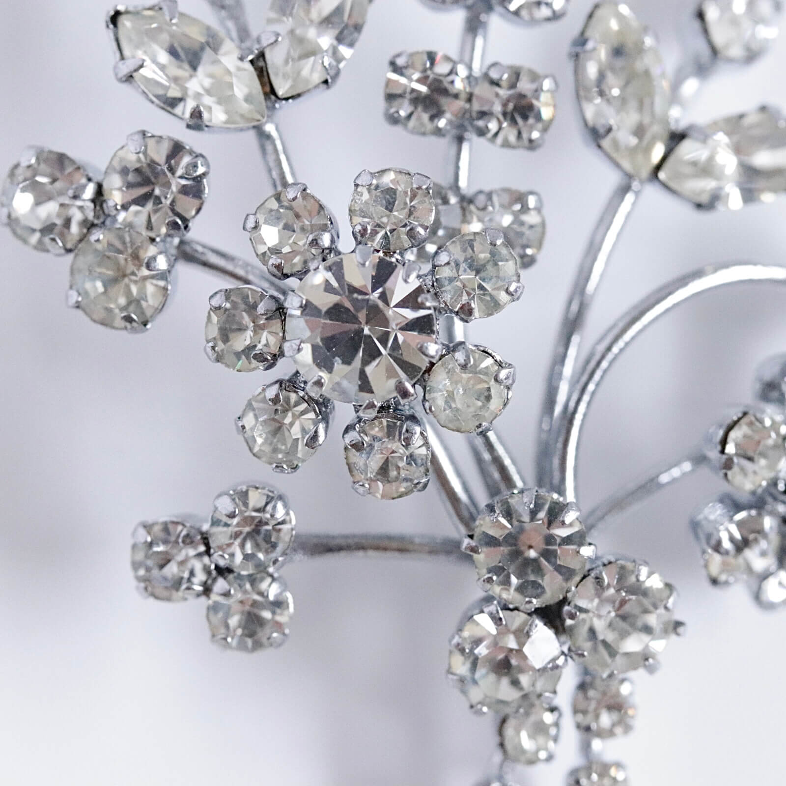 クリアビジューのフラワーブーケは胸元を華やかに印象付けます。