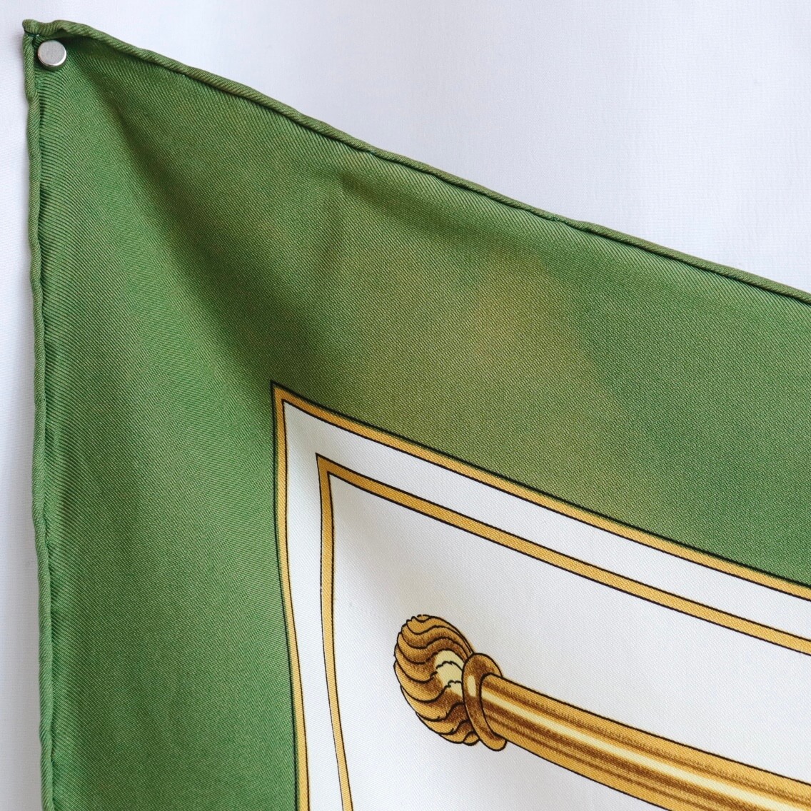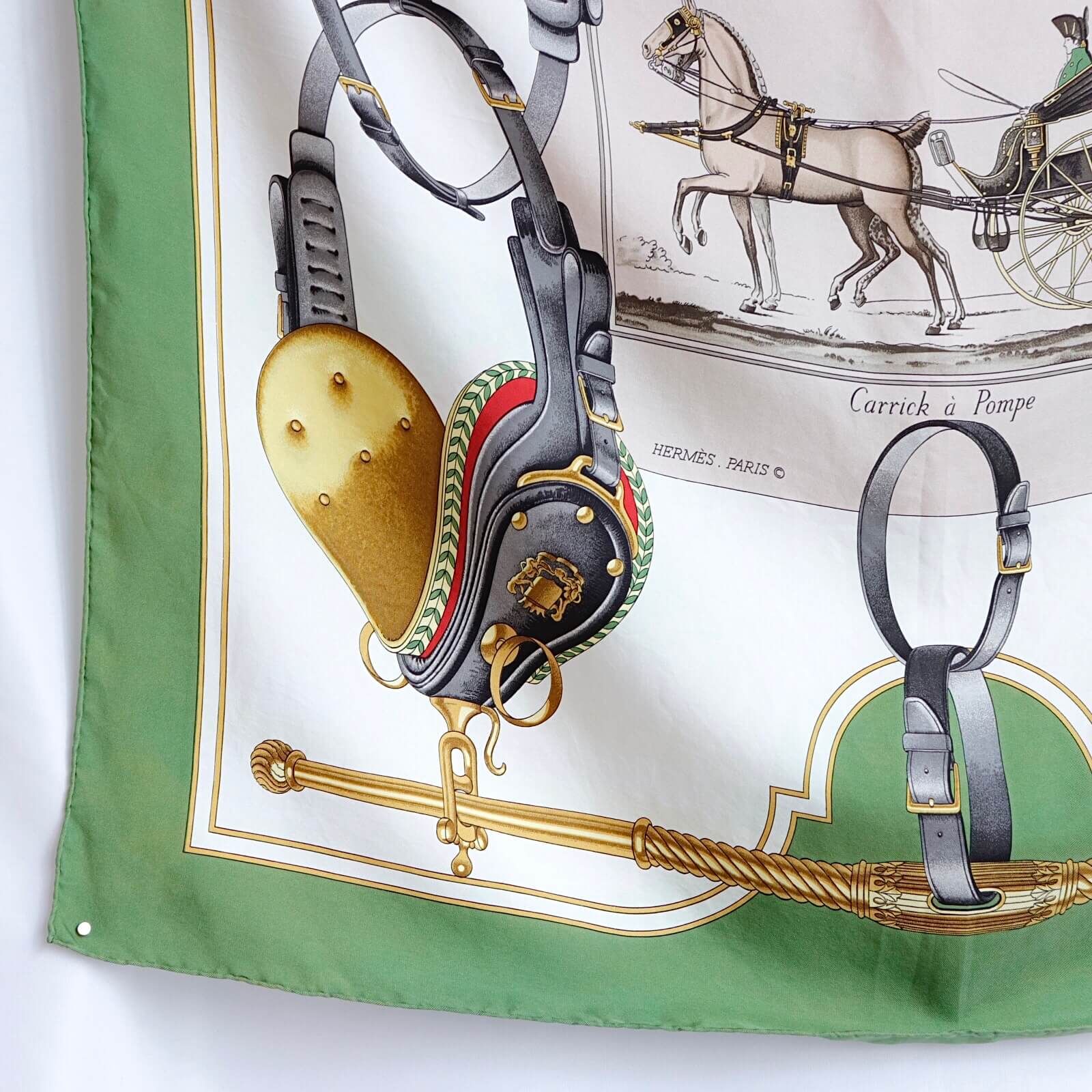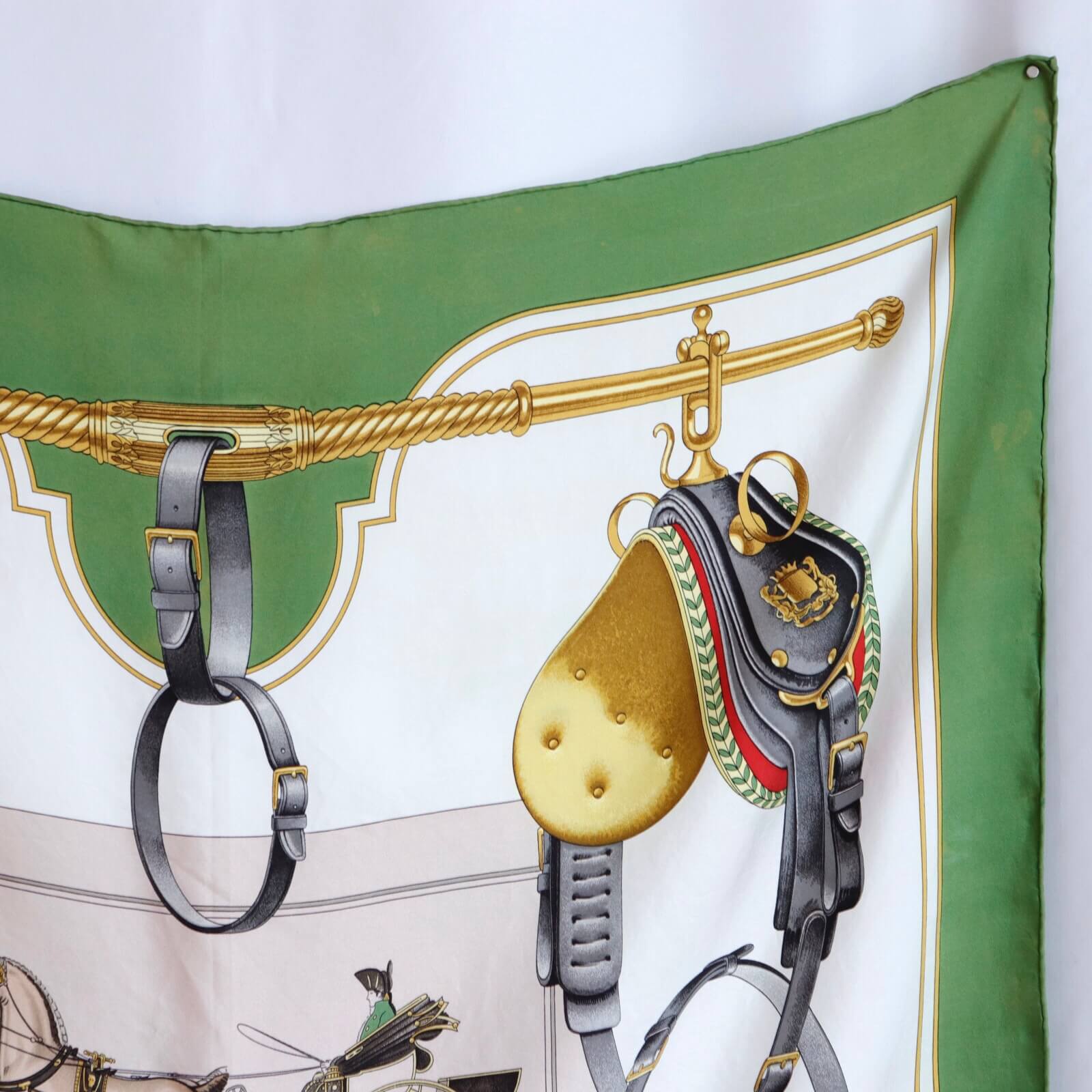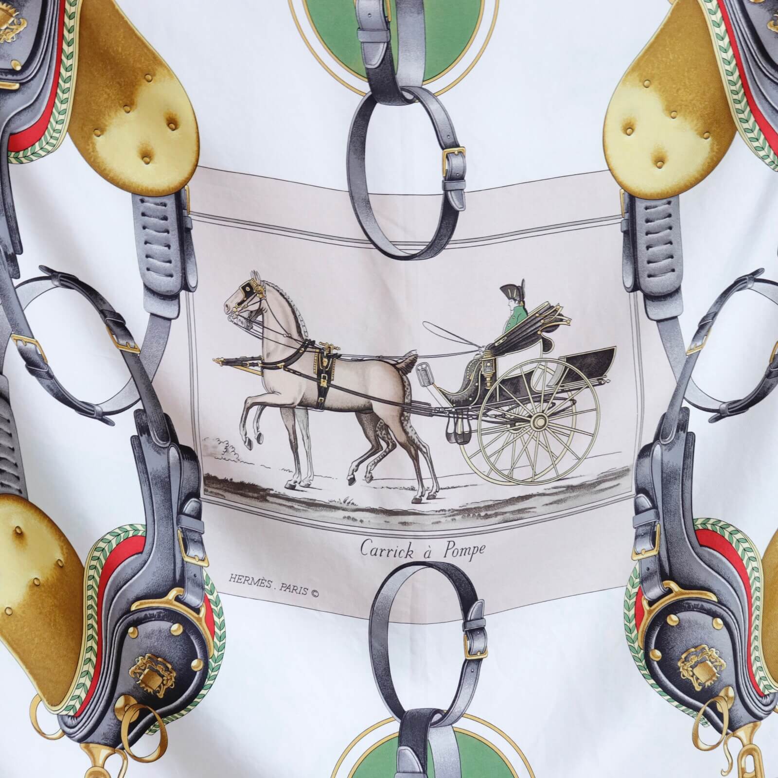 エルメスらしい馬具の絵柄で、クラシカルなエレガンスが美しい作品です。