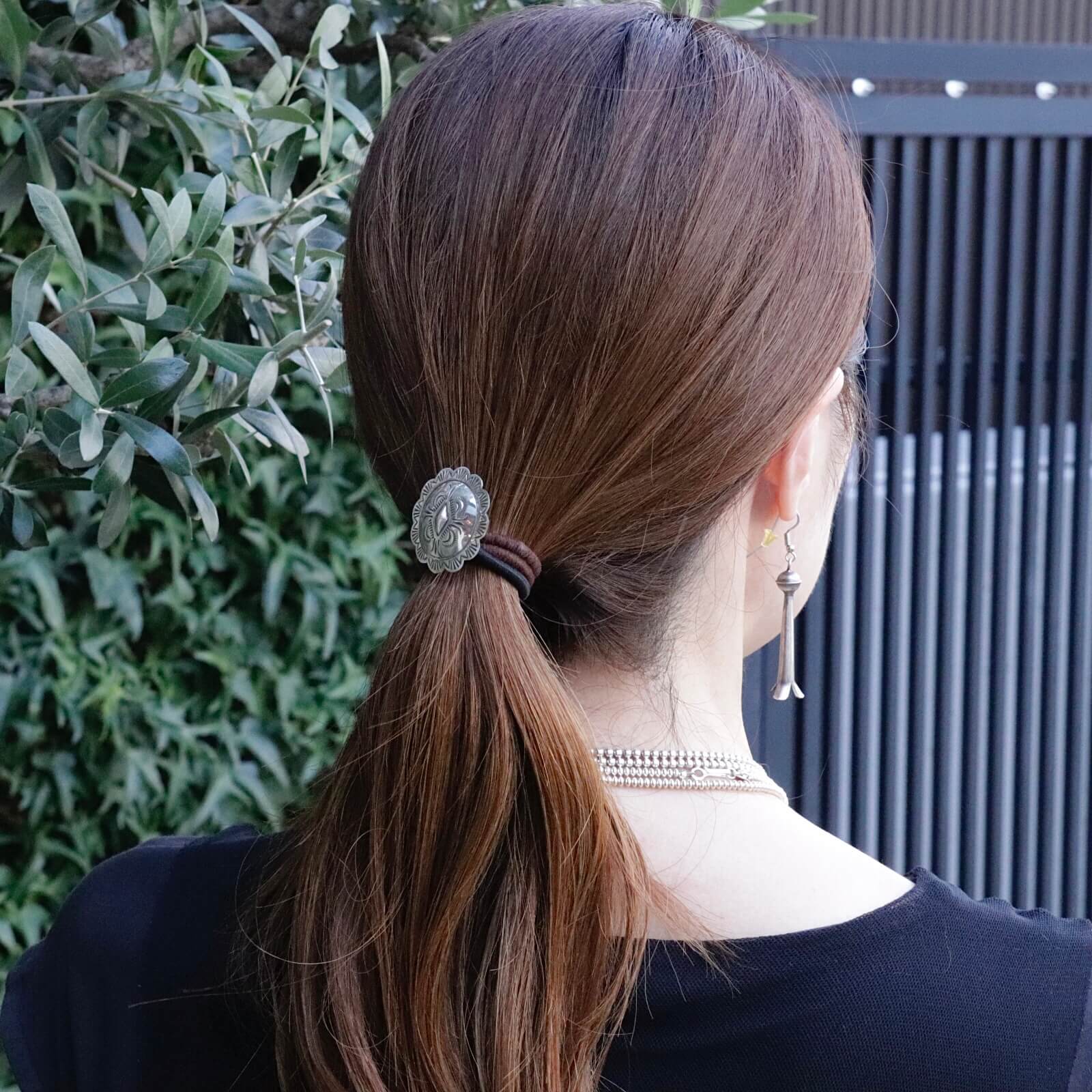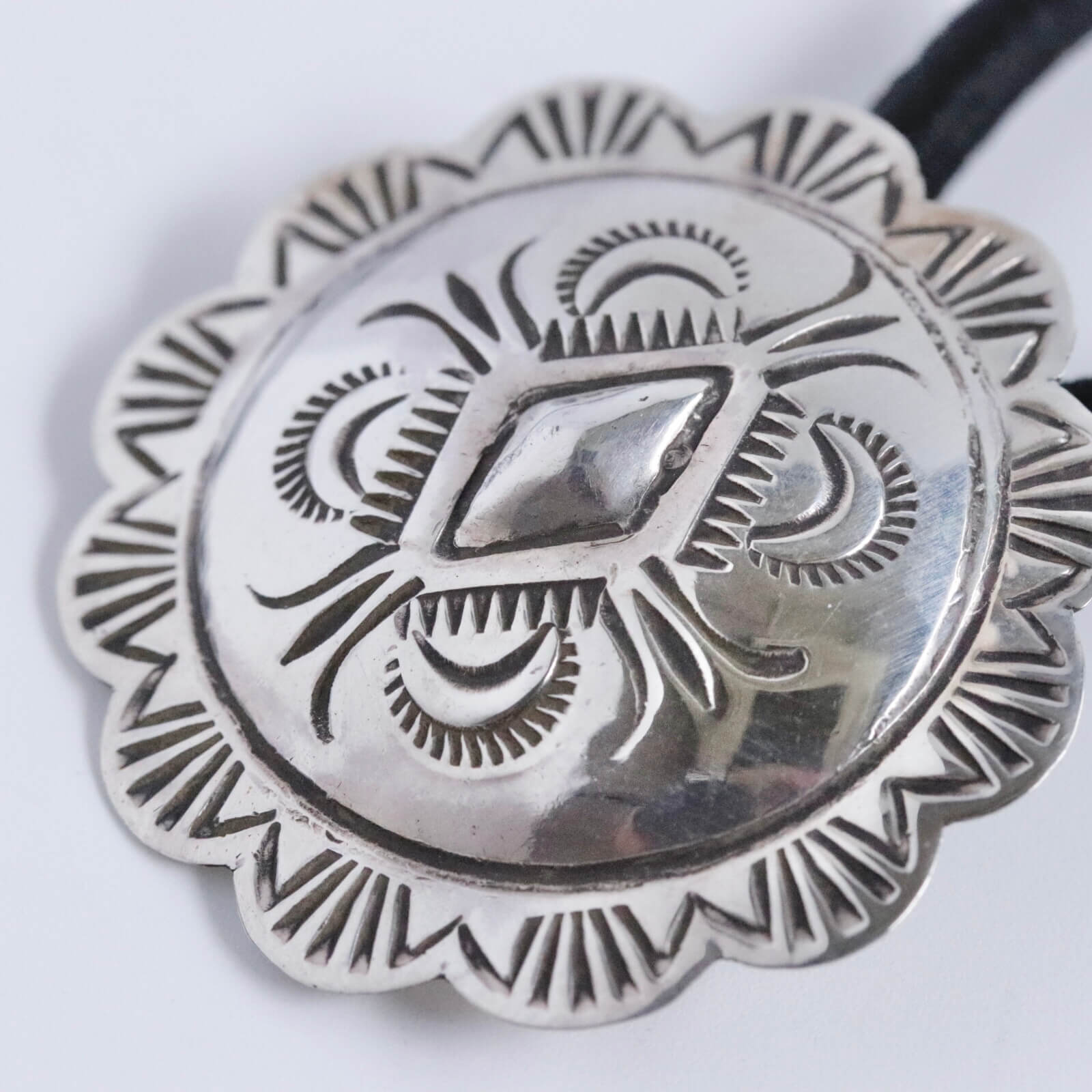 オーセンティックなスタンプワークが施されたネイティブアメリカンジュエリーらしい佇まいを持った作品です。
