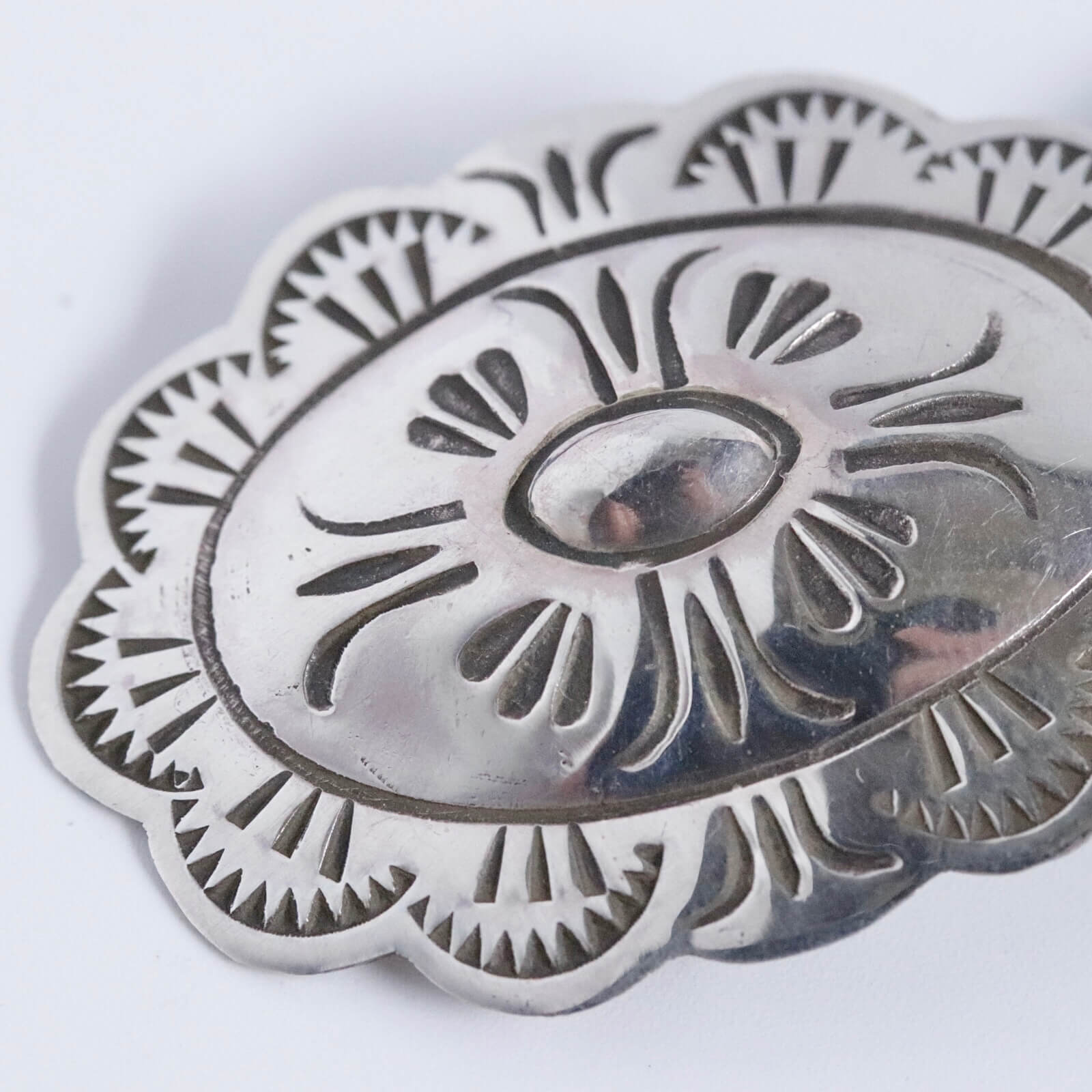 オーセンティックなスタンプワークが施されたネイティブアメリカンジュエリーらしい佇まいを持った作品です。