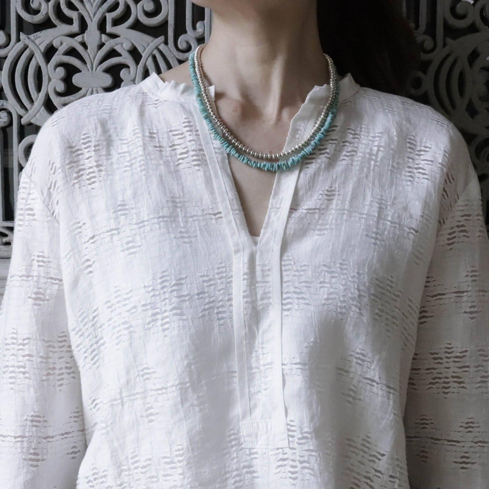 写真のようにナバホパールのネックレスと重ねてお使いいただくのも素敵です。