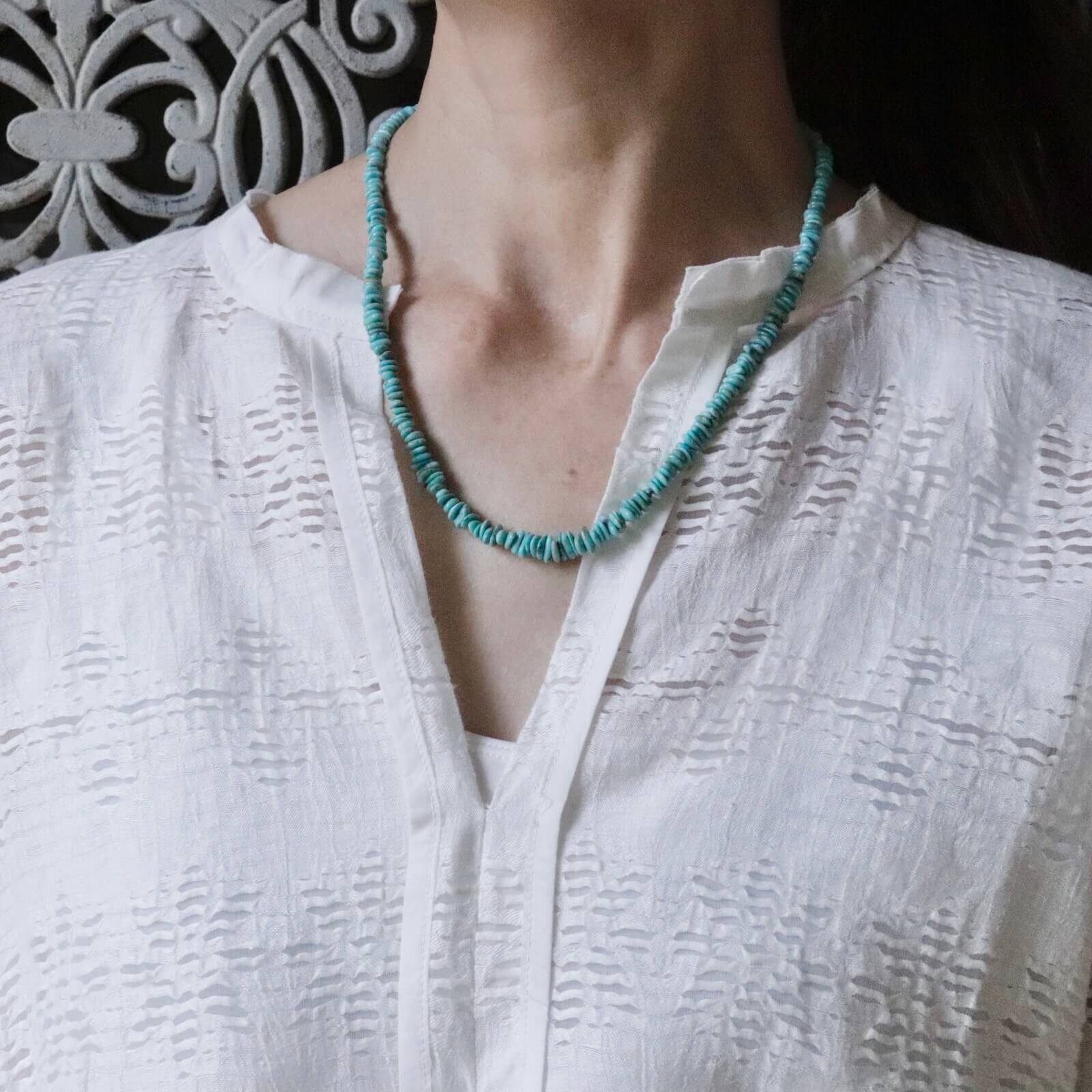 細かい小さな石をさざれ石と呼びますが、こちらはターコイズ のさざれ石を使ったネックレスです。
