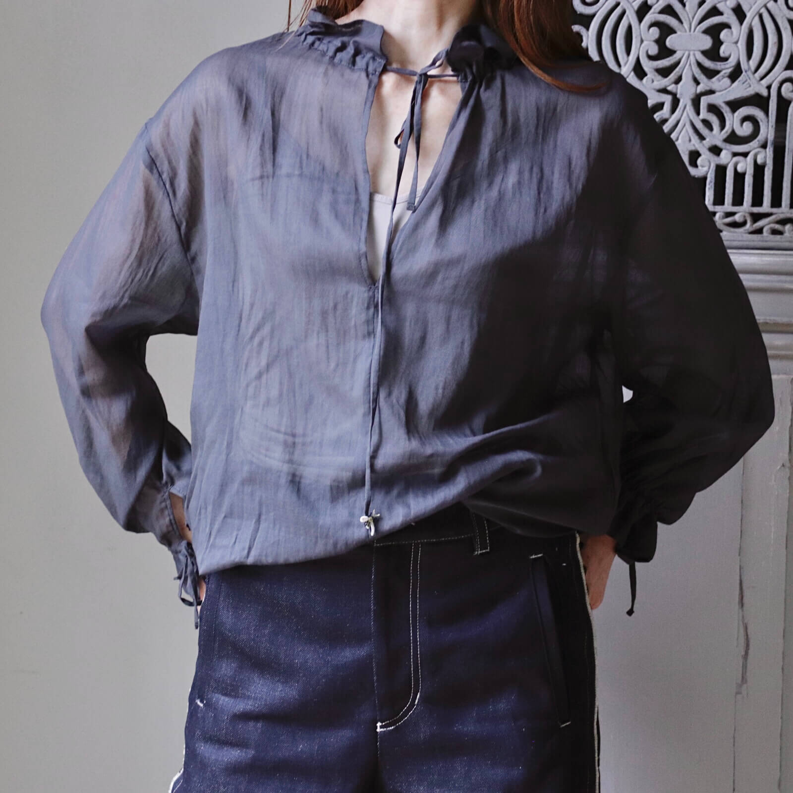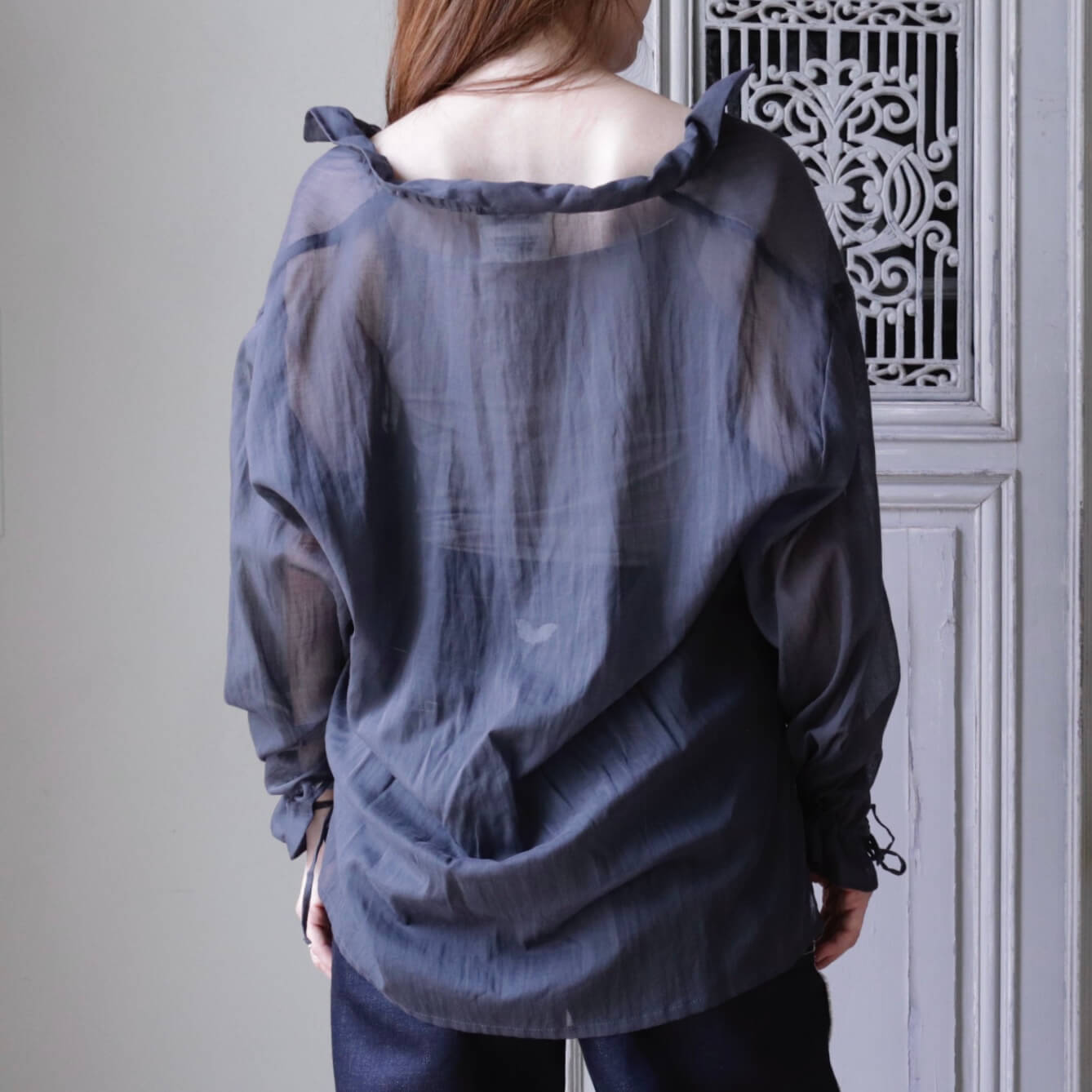 袖口や襟元は細いコードでお好きなボリュームにギャザーをよせて着られます。