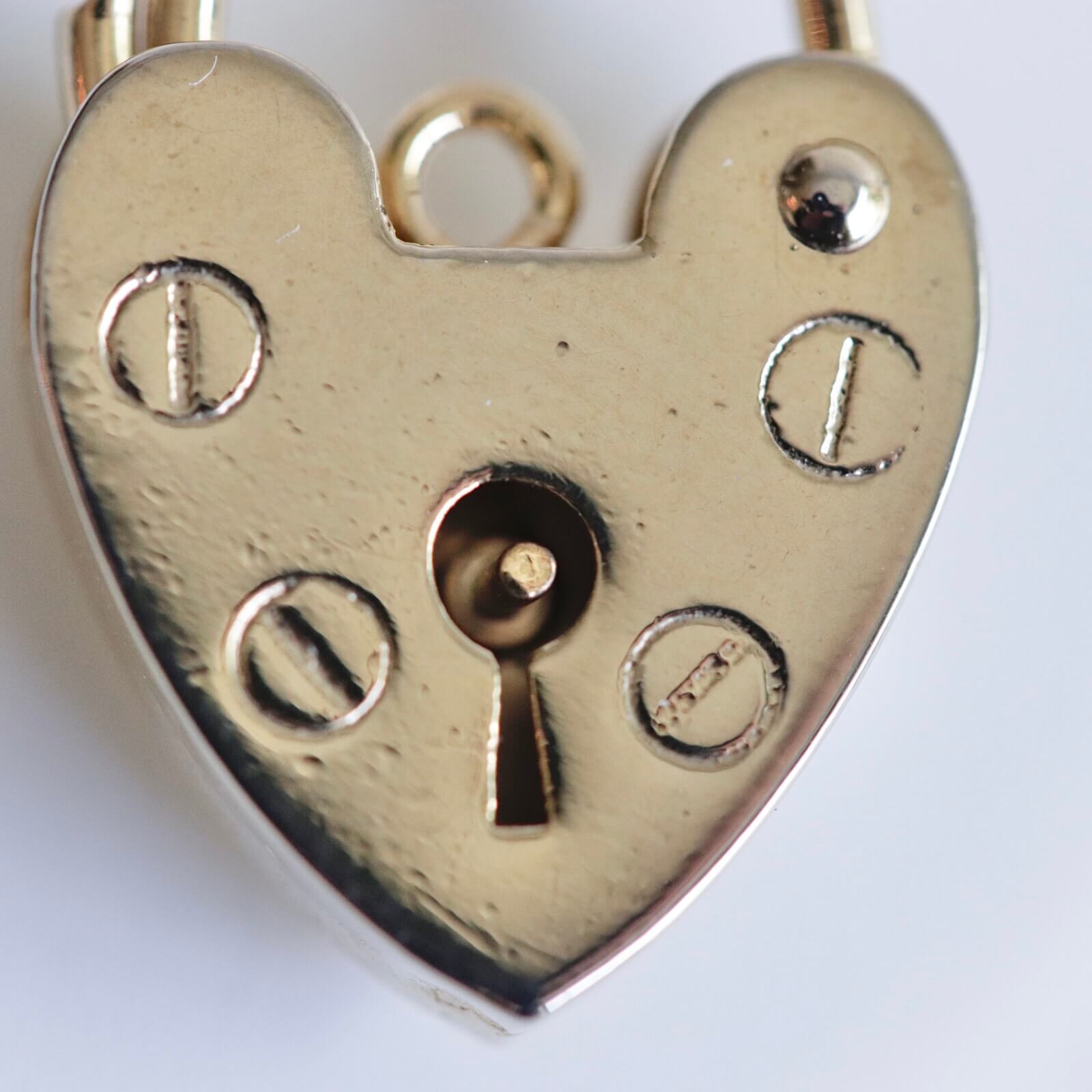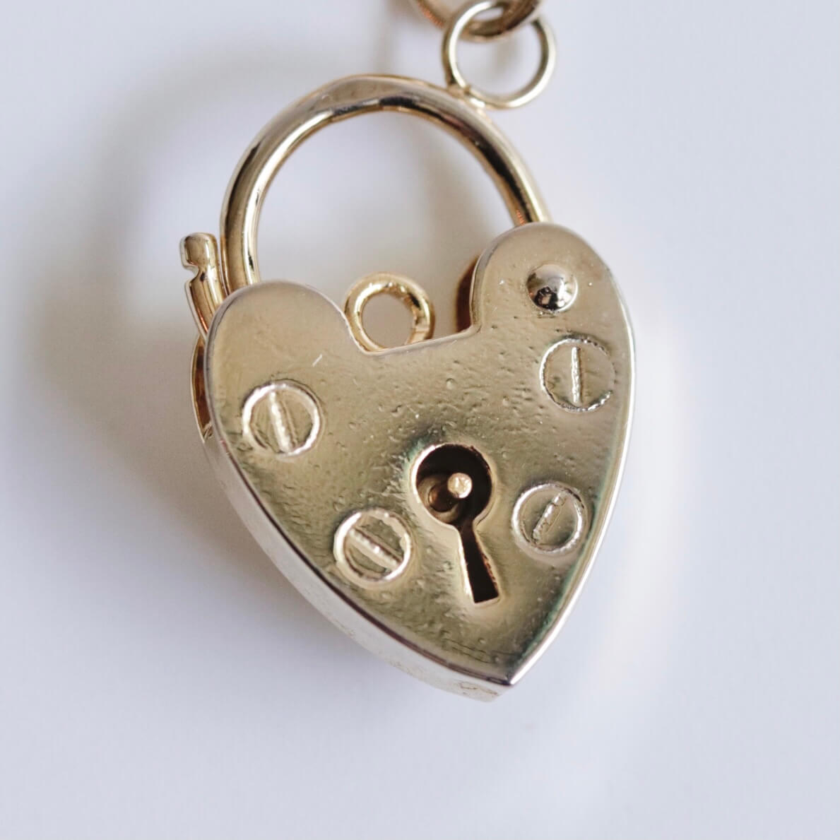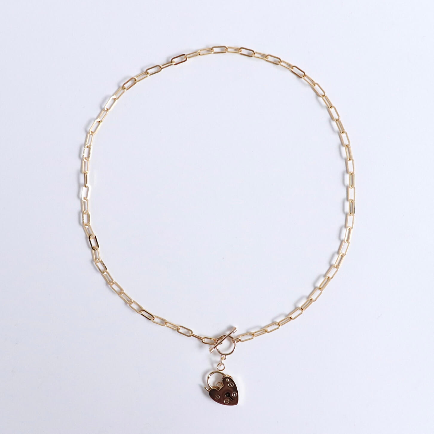 ハート型のパドロック(南京錠)のチャームを真鍮のチェーンを使ってネックレスに仕立てました。