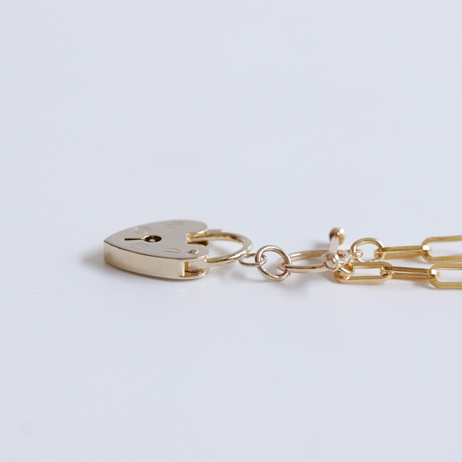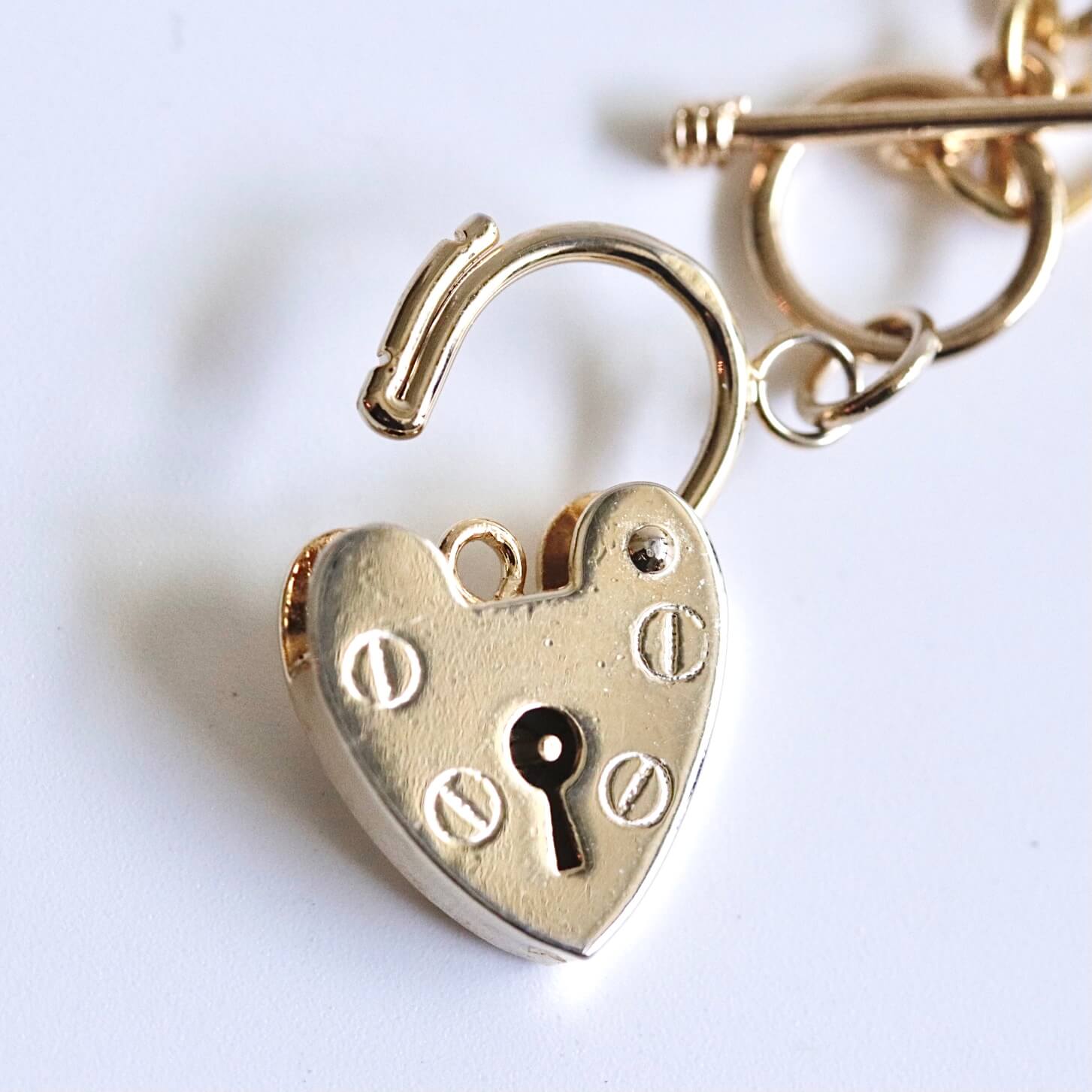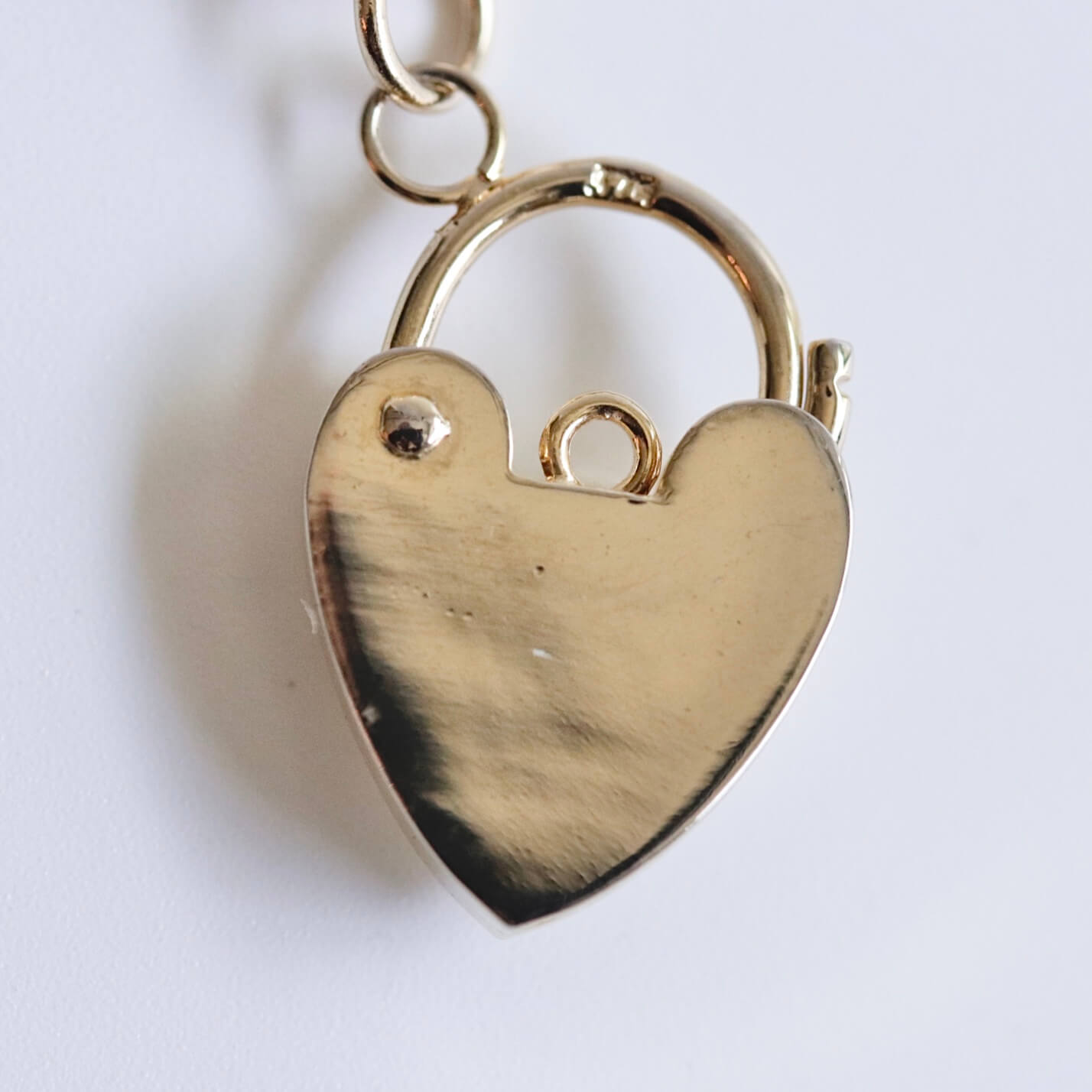 ハート型のパドロック(南京錠)のチャームを真鍮のチェーンを使ってネックレスに仕立てました。