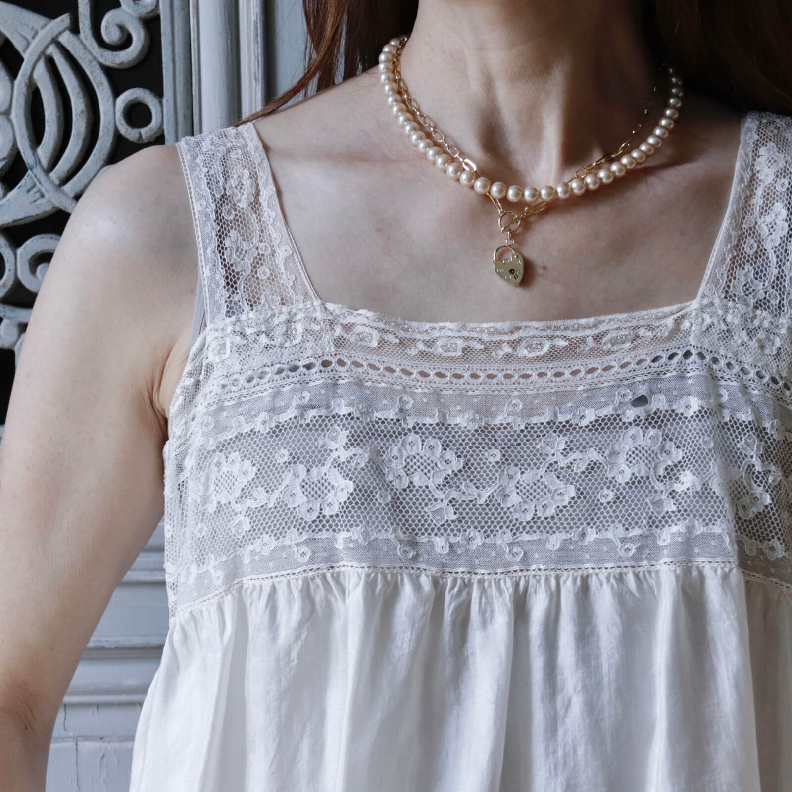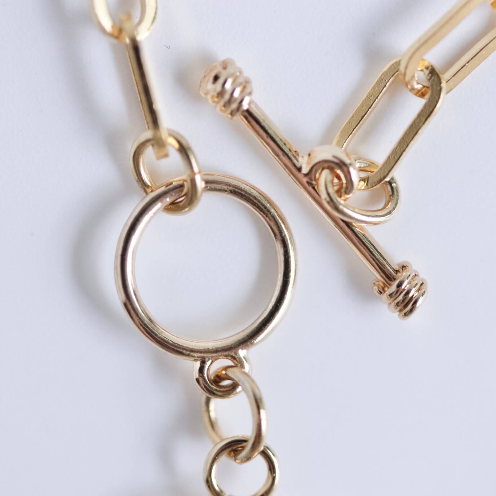 パールのネックレスや他のチェーンのネックレスと重ねたレイヤースタイルもおすすめです。