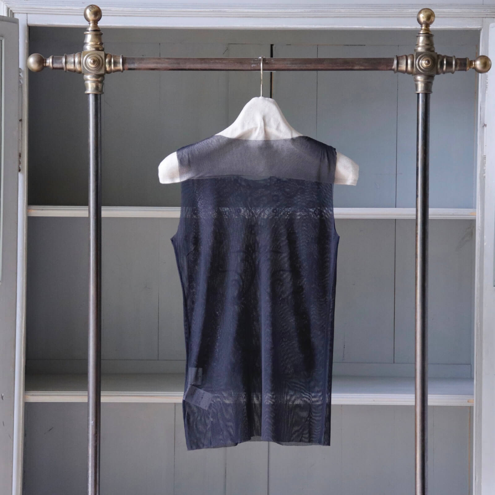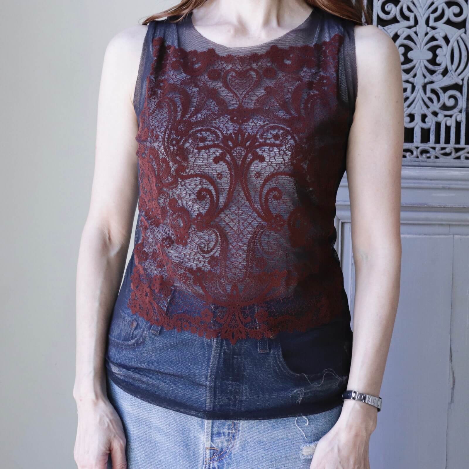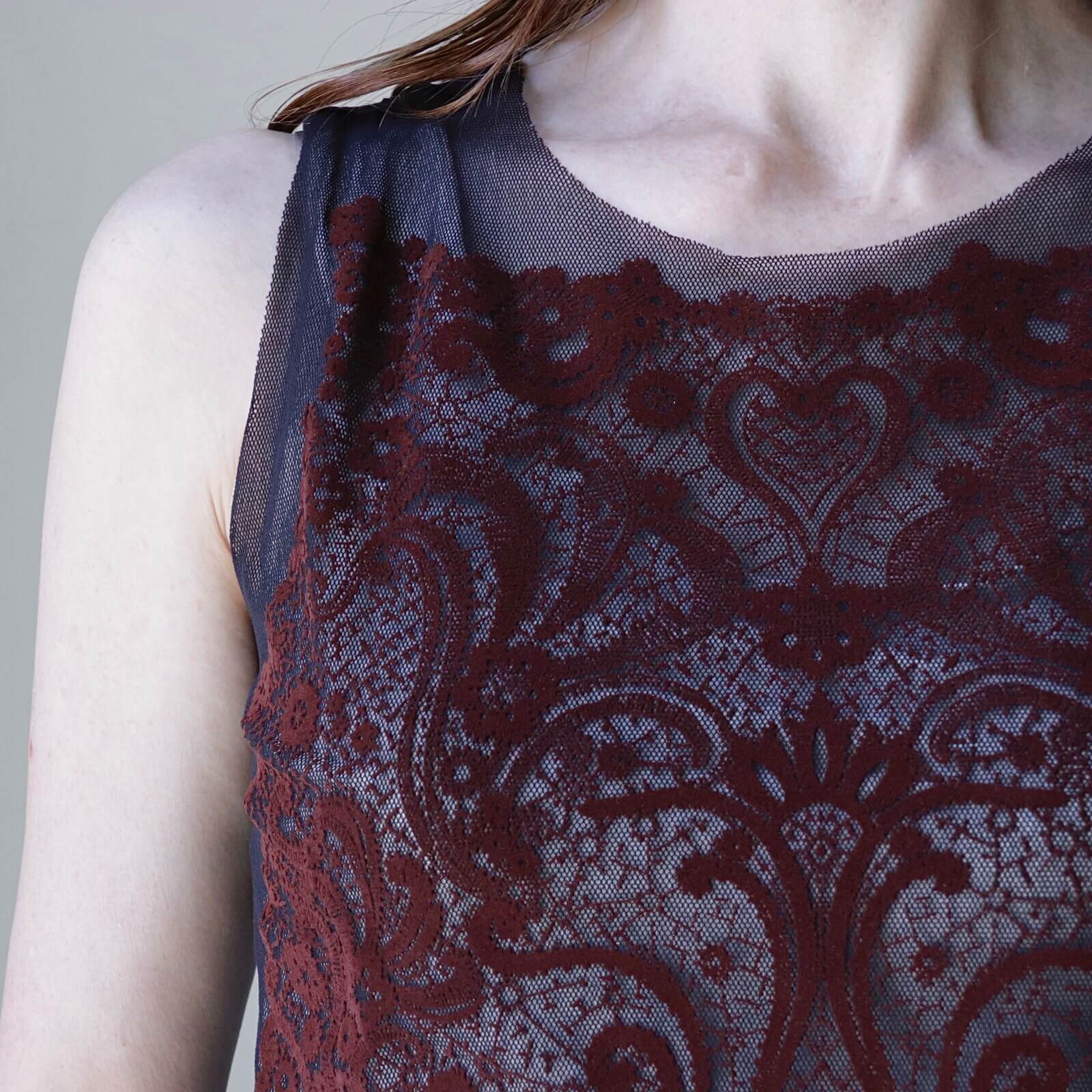 クラシカルなレース模様のデザインが印象的なフロッキープリントのキャミソール。