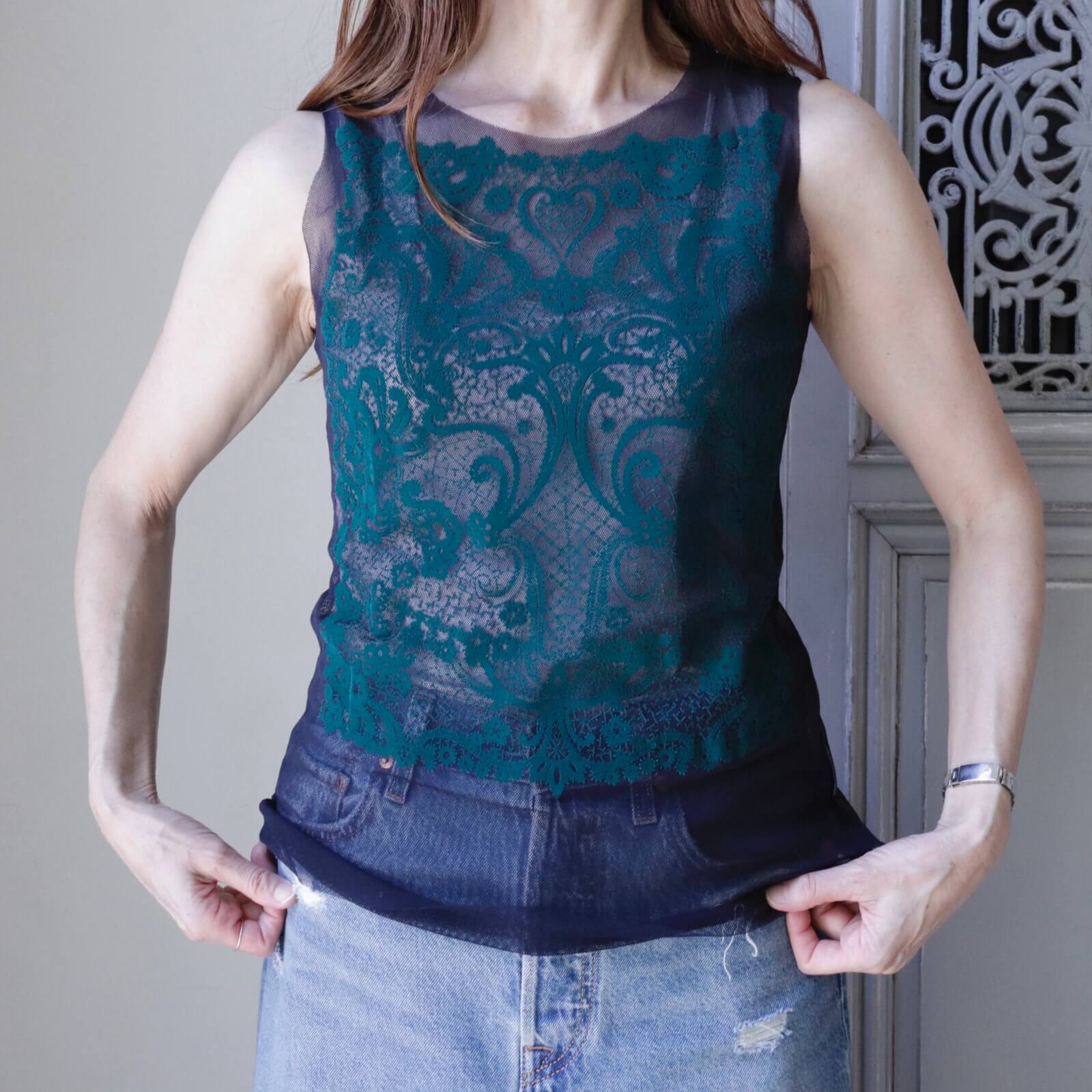 ANTIPAST mesh camisole Navy × Dark Green