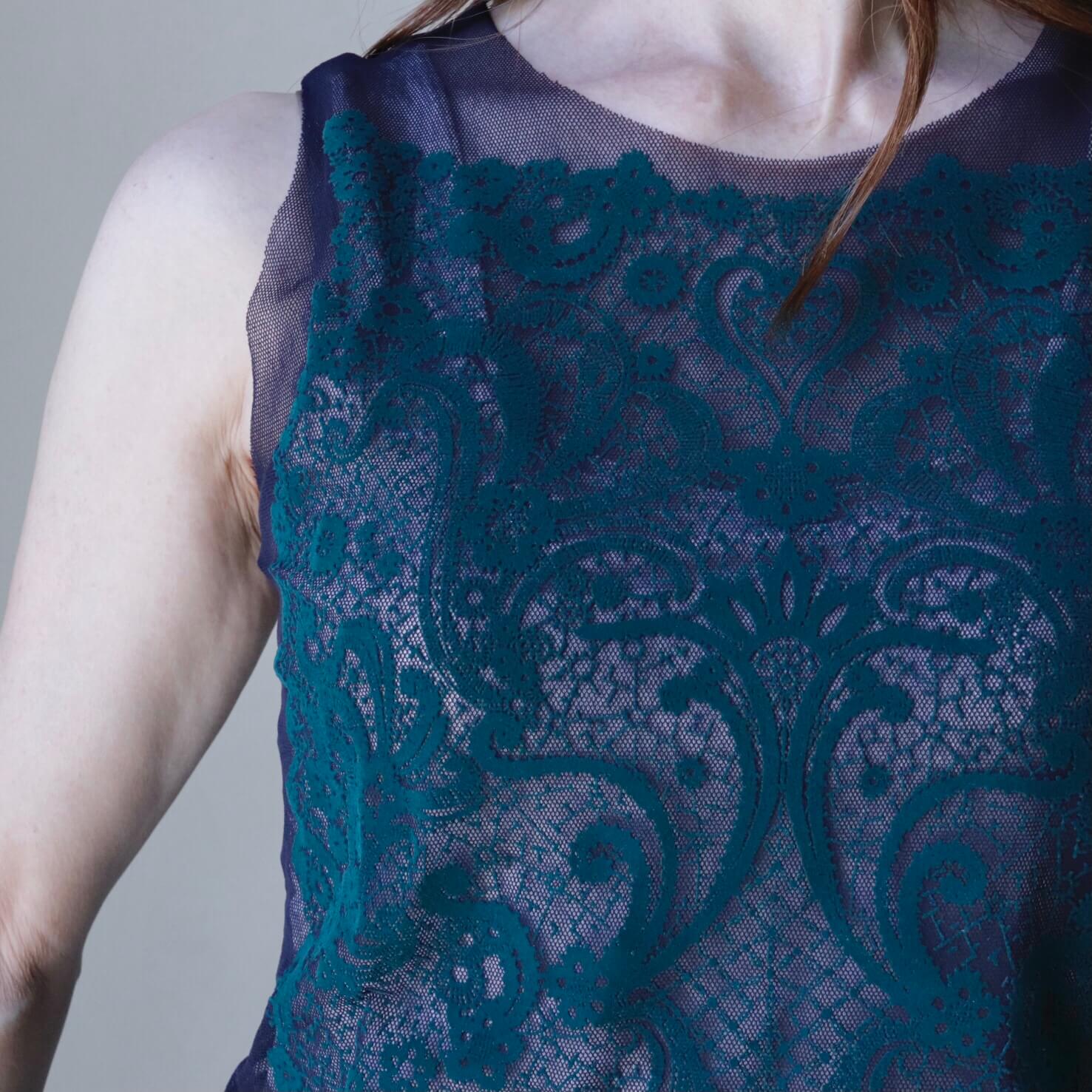 クラシカルなレース模様のデザインが印象的なフロッキープリントのキャミソール。