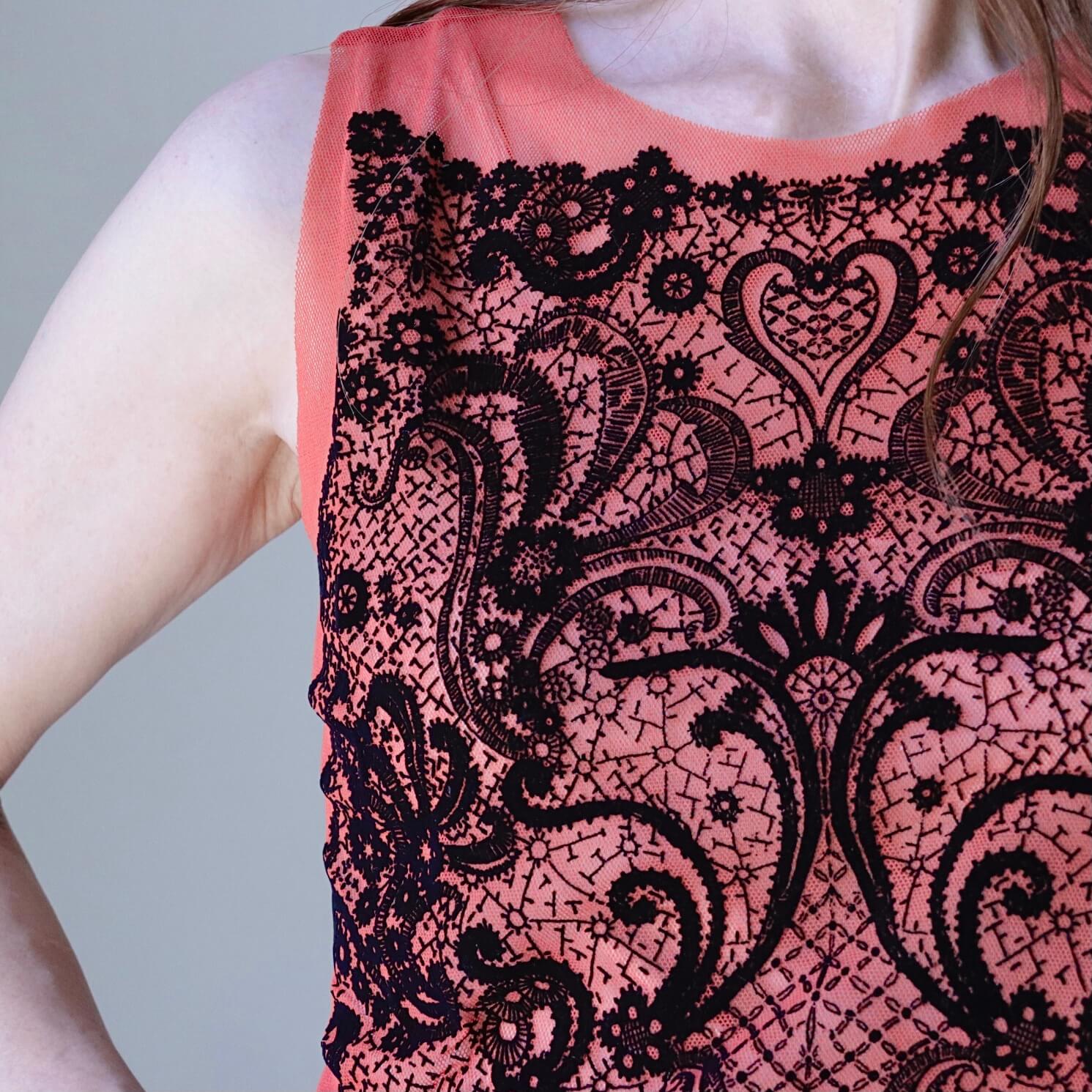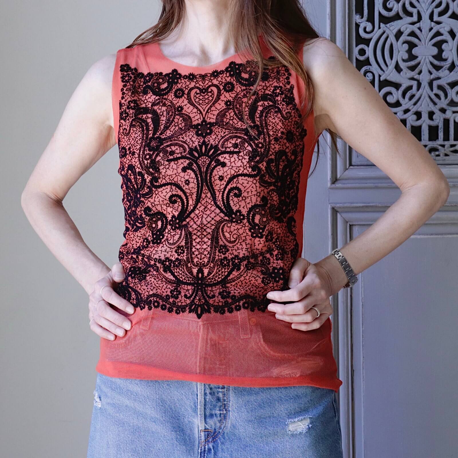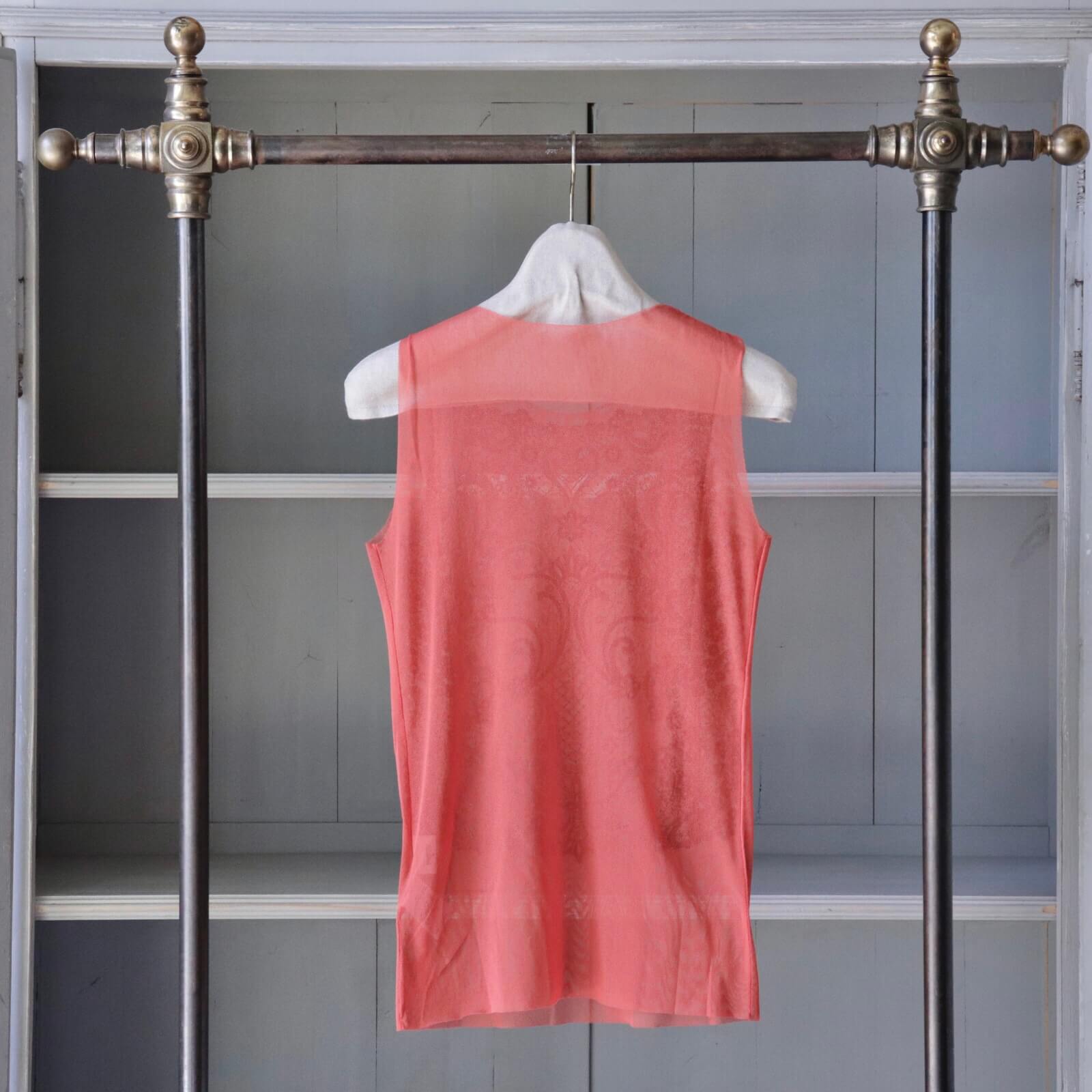 クラシカルなレース模様のデザインが印象的なフロッキープリントのキャミソール。