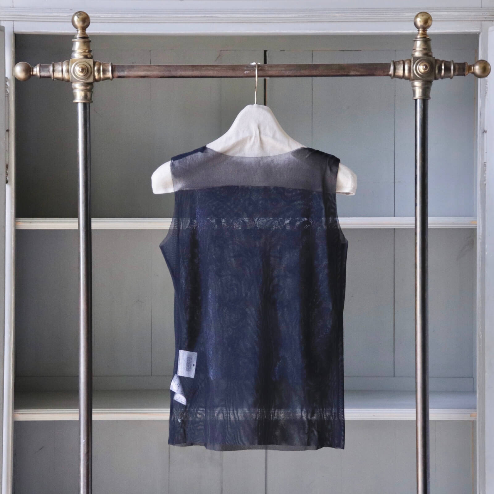 クラシカルなレース模様のデザインが印象的なフロッキープリントのキャミソール。