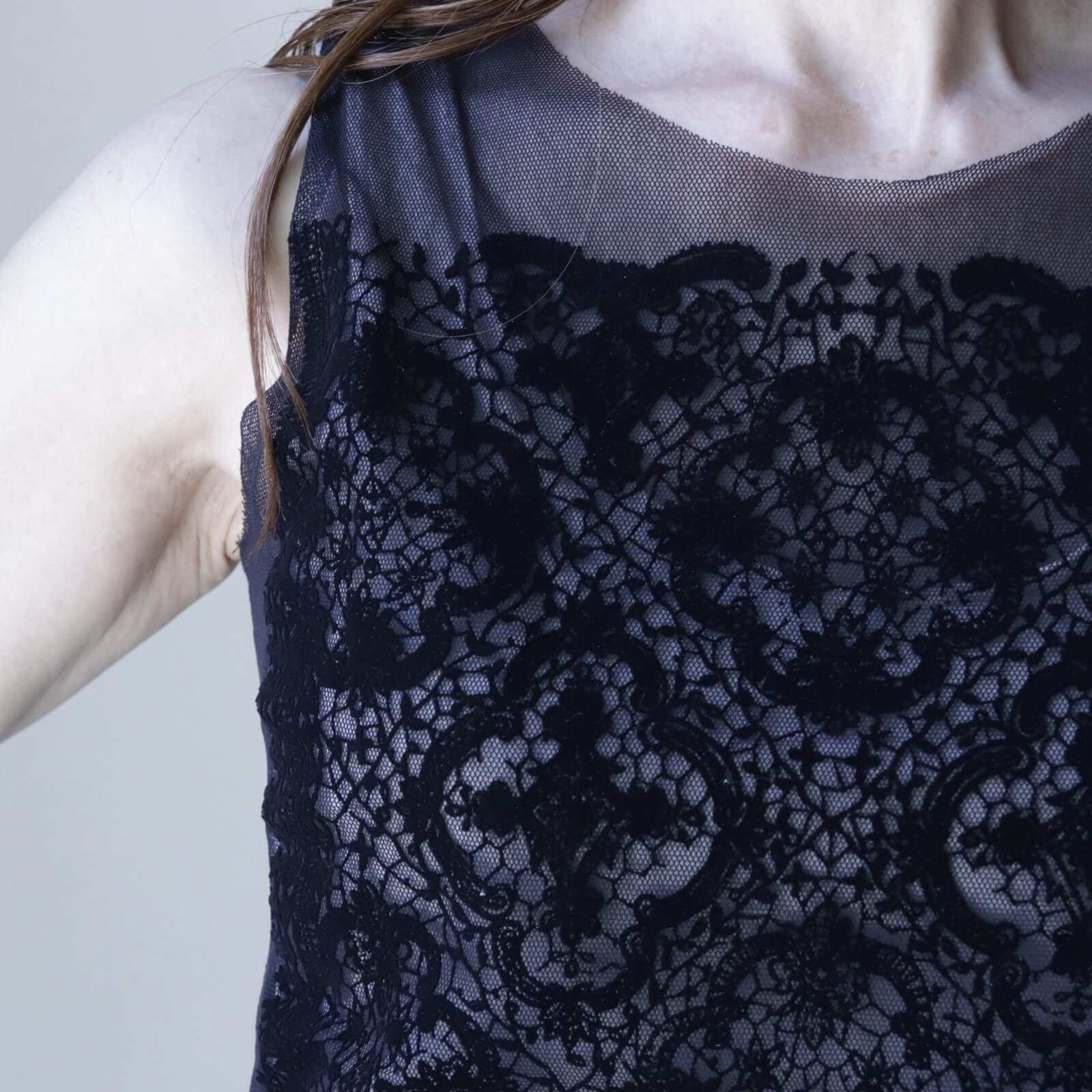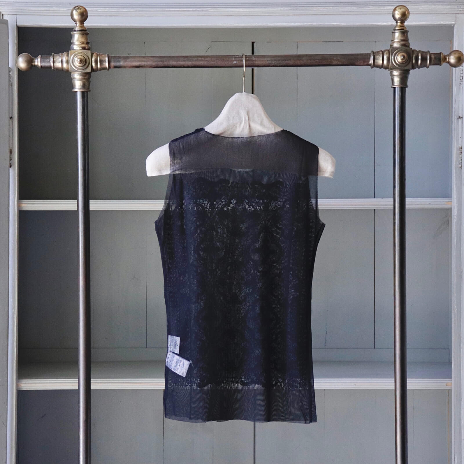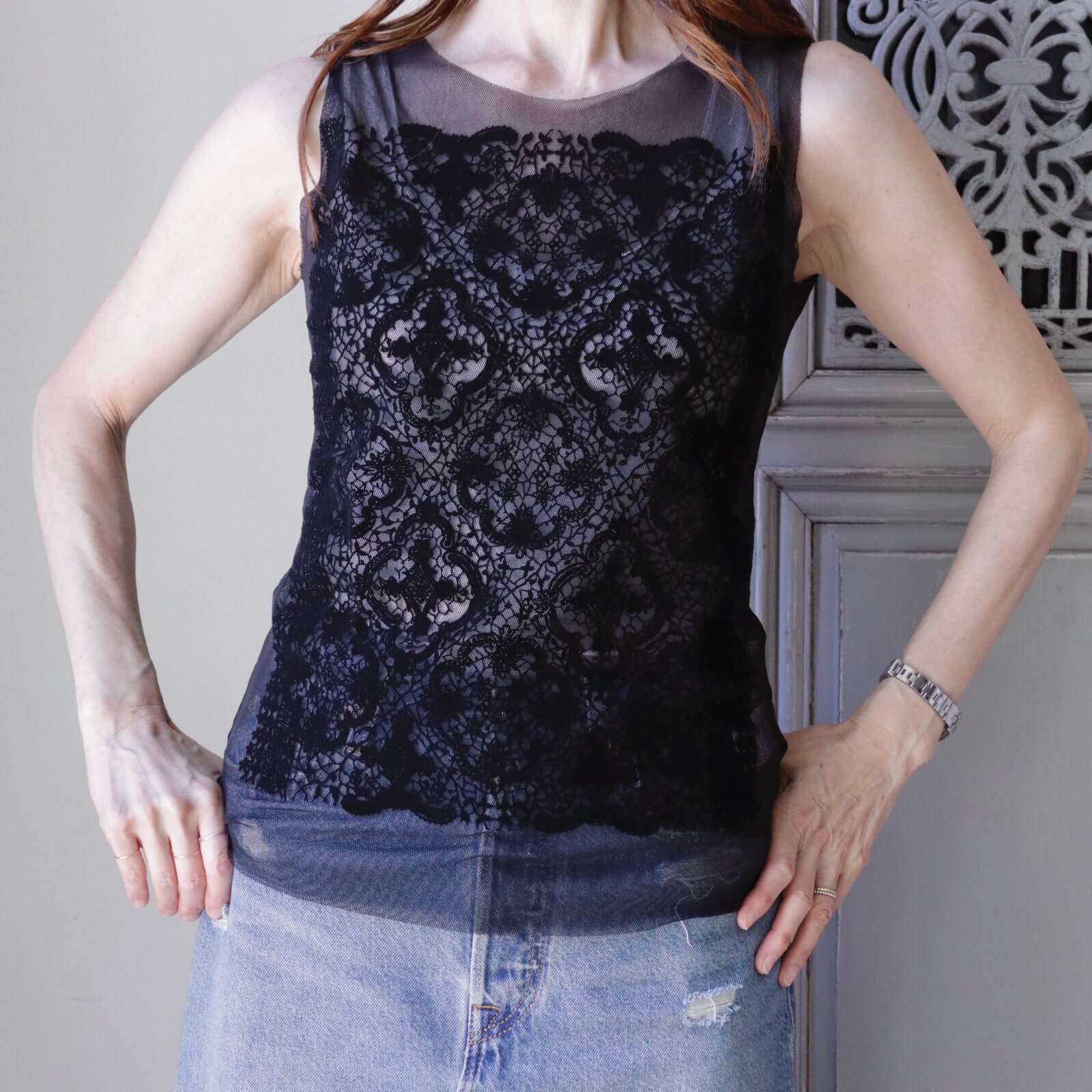 クラシカルなレース模様のデザインが印象的なフロッキープリントのキャミソール。