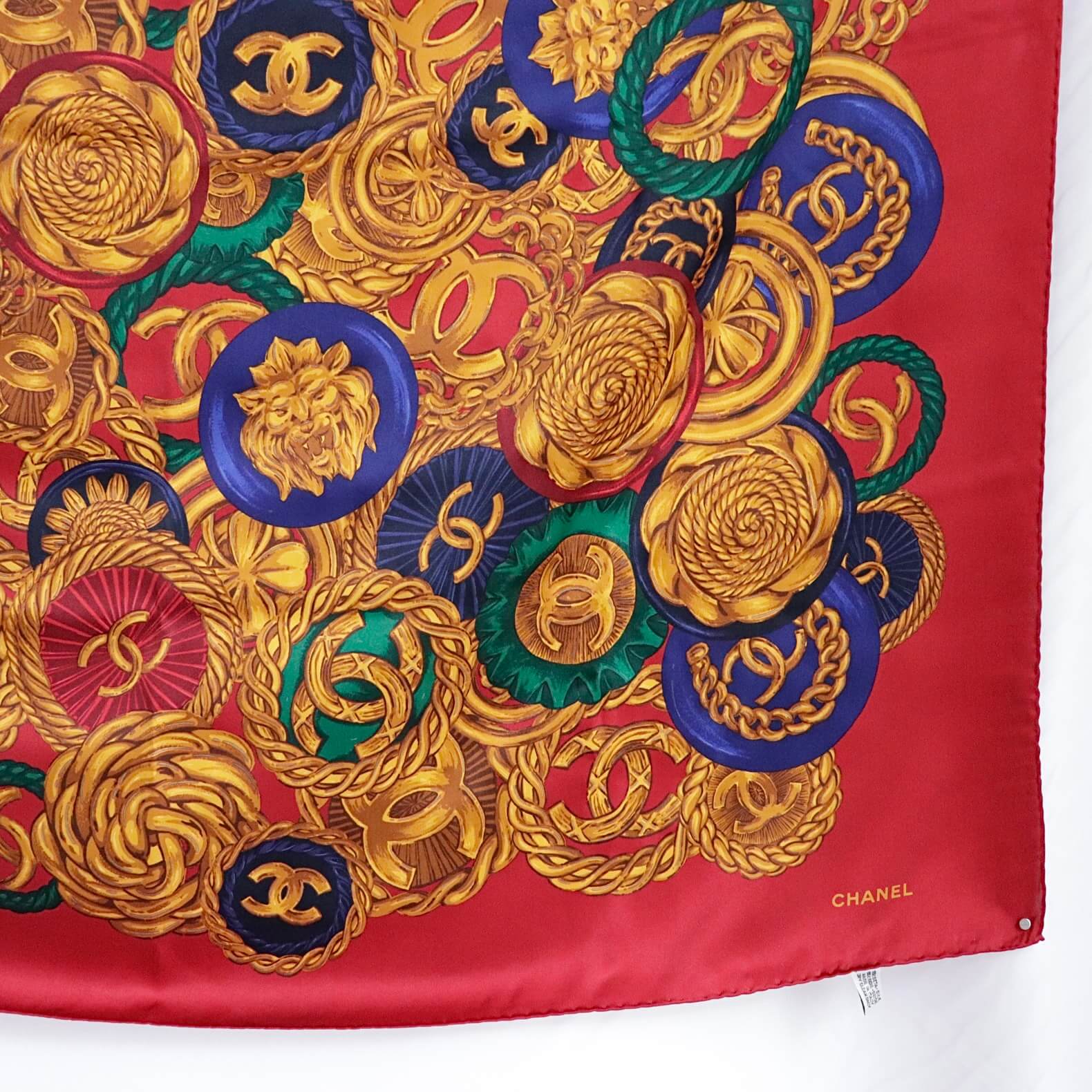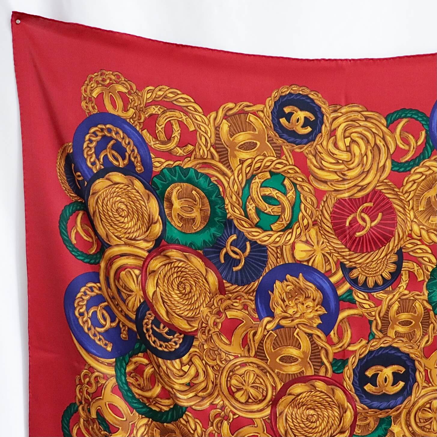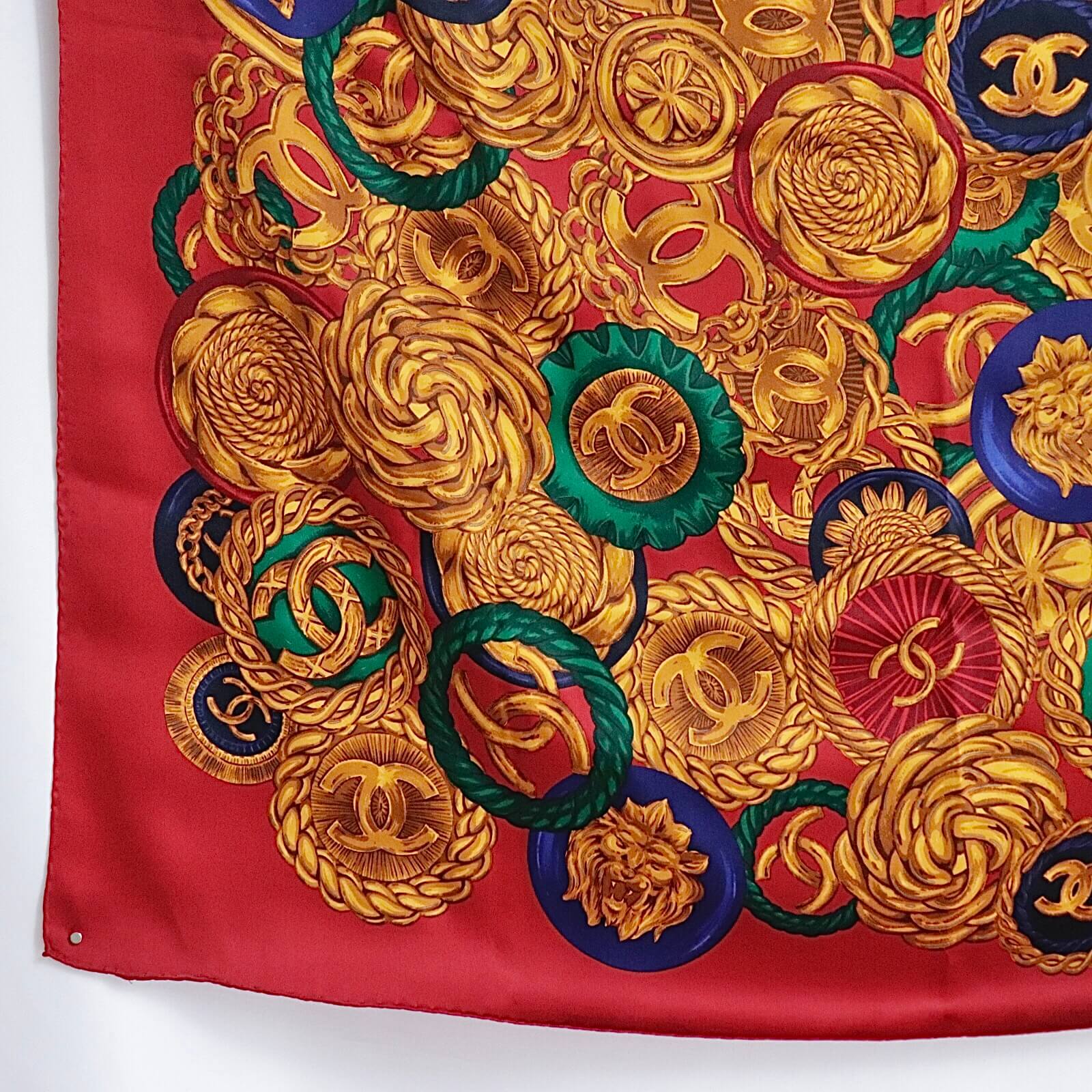 ヴィンテージ「シャネル」 1990年代 ココボタン柄 シルクスカーフ
