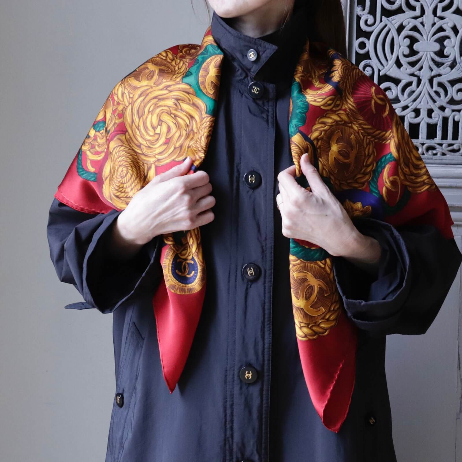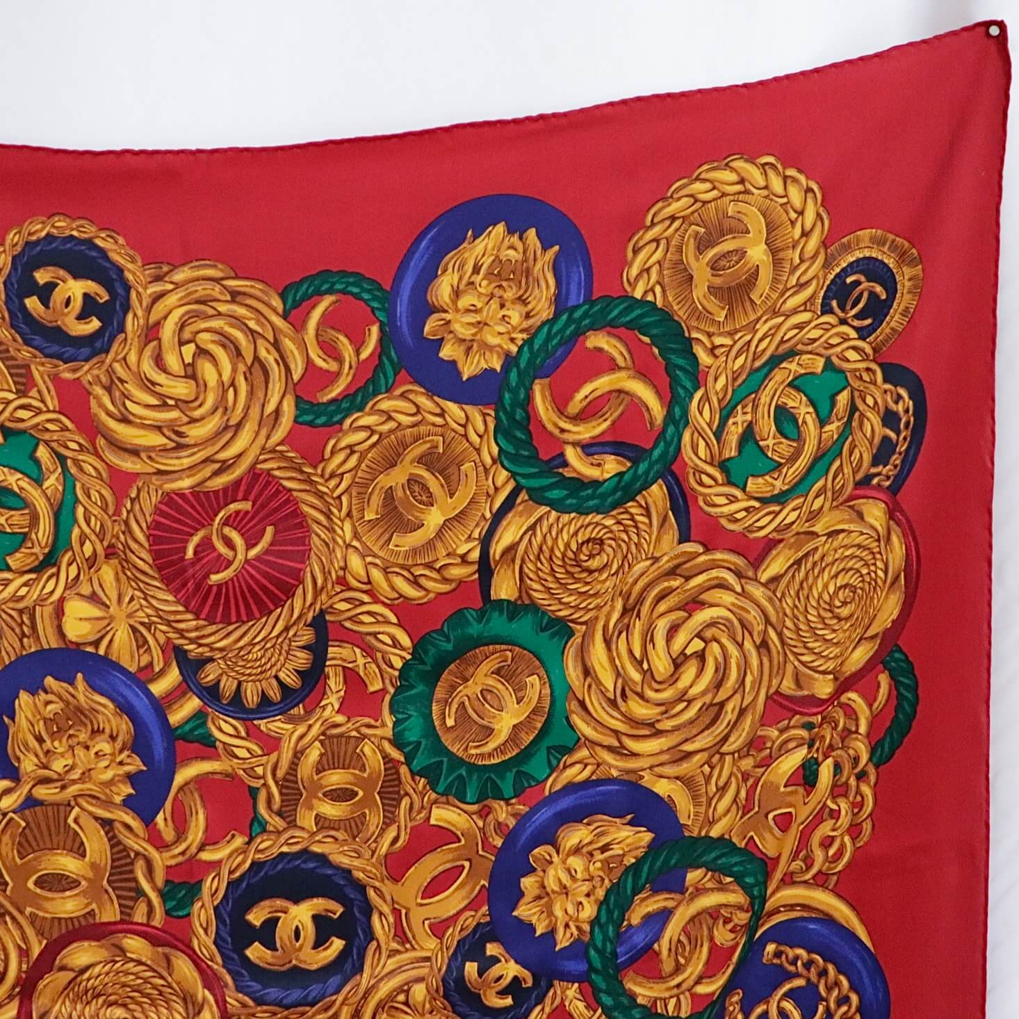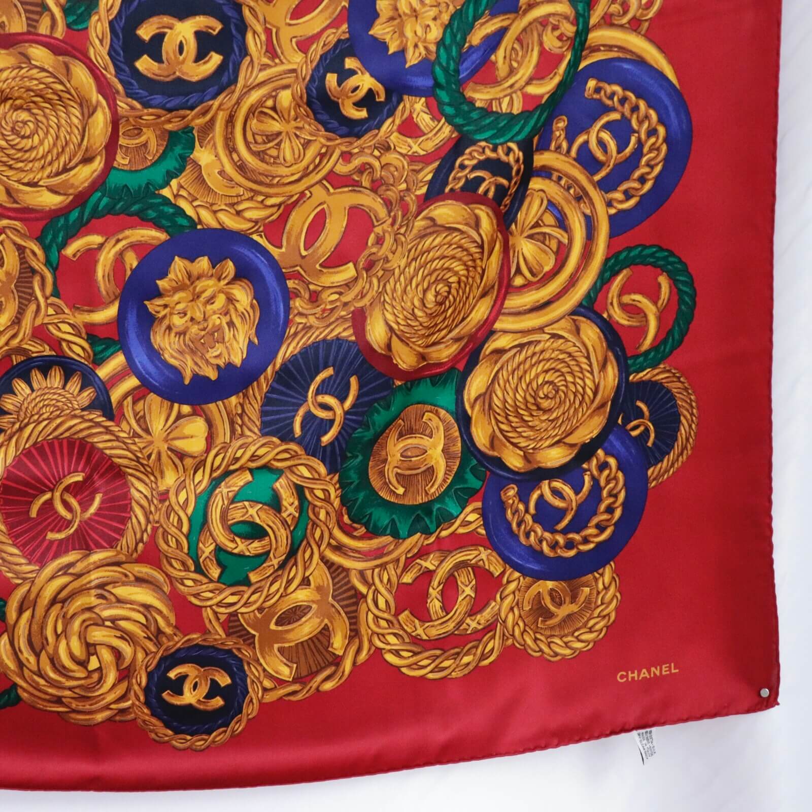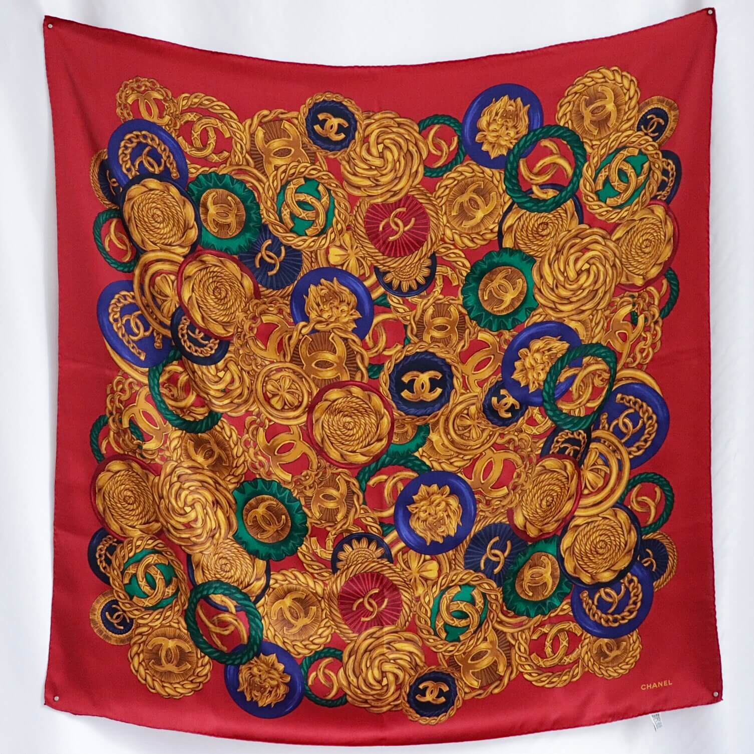 ヴィンテージ「シャネル」 1990年代 ココボタン柄 シルクスカーフ