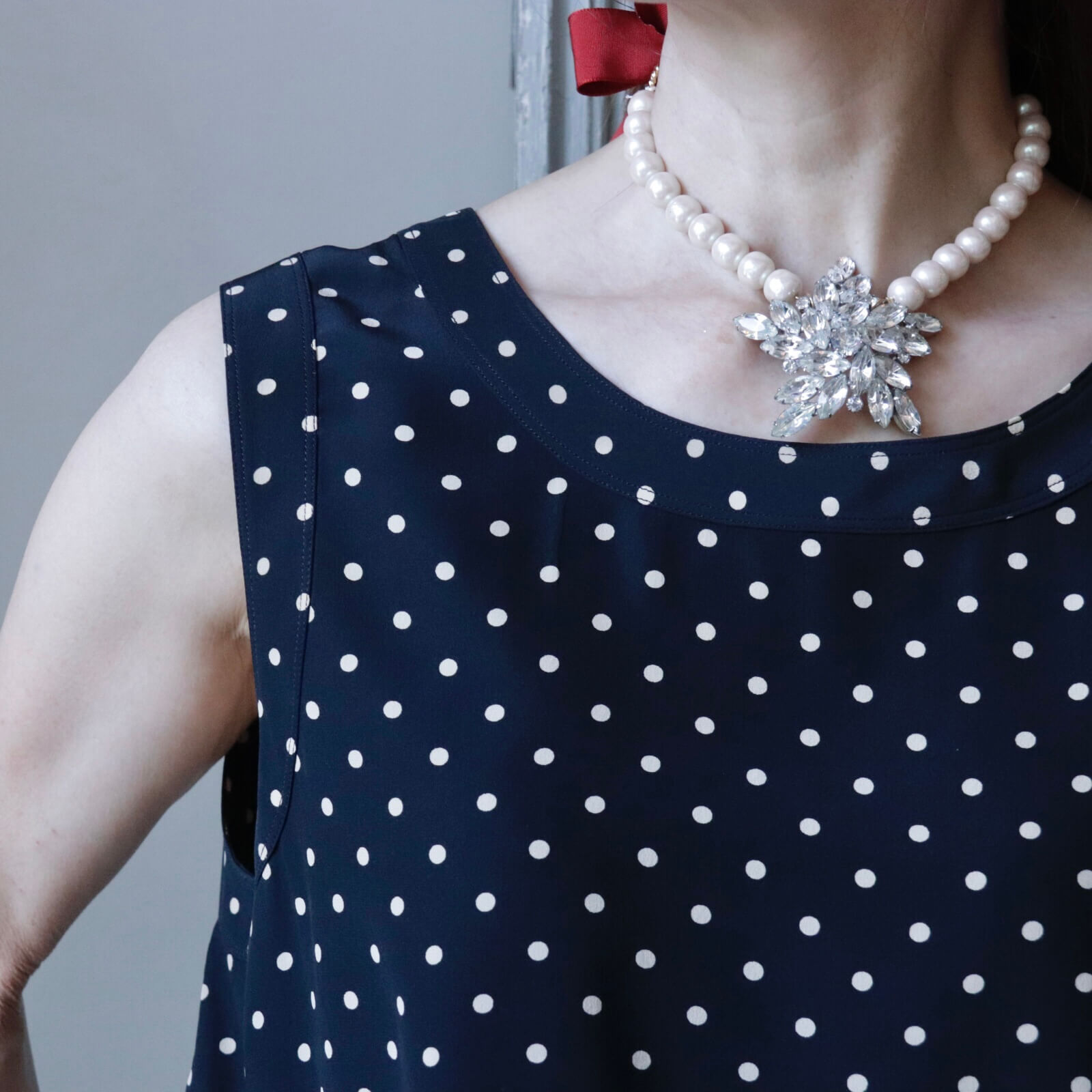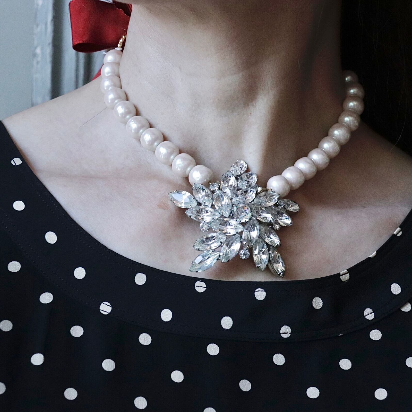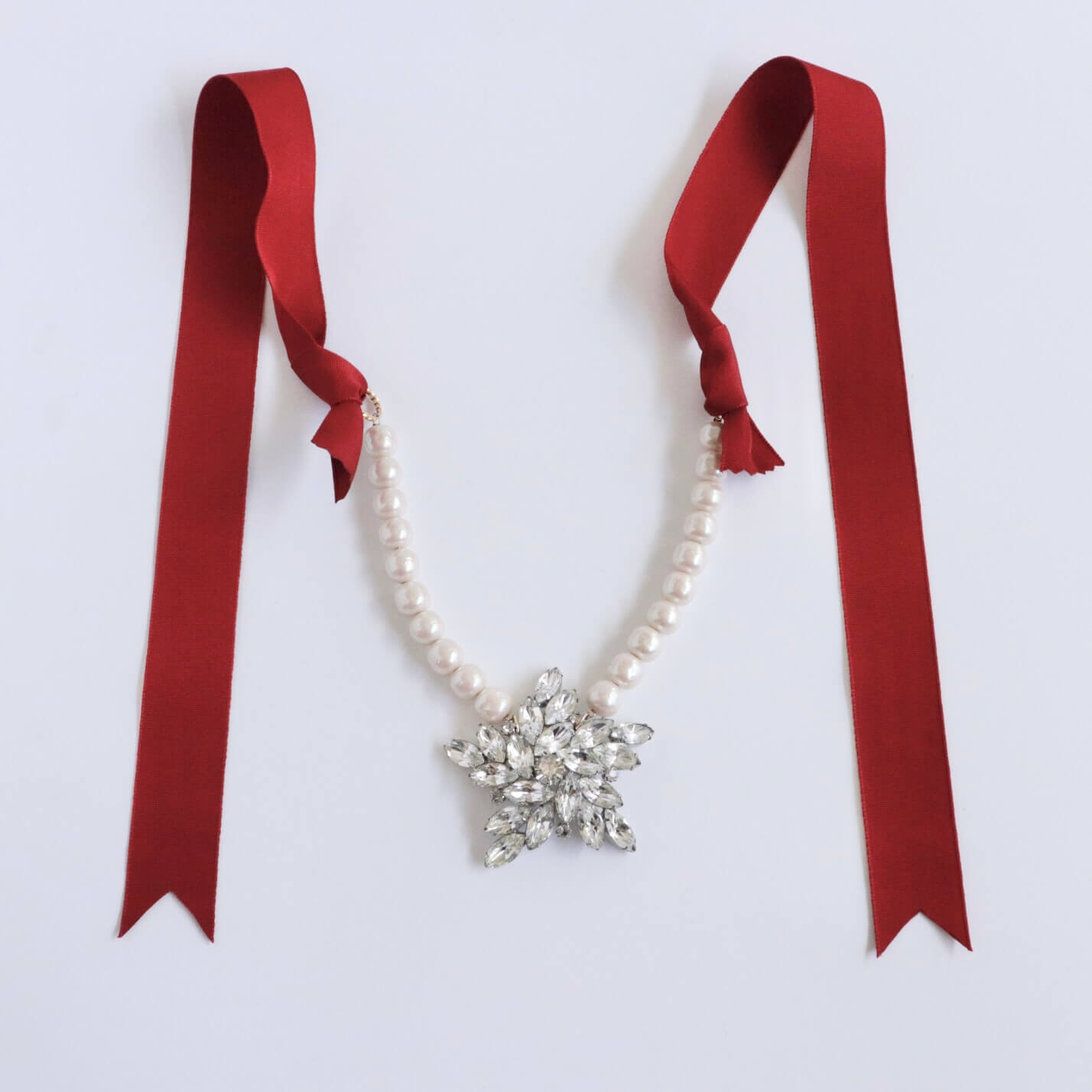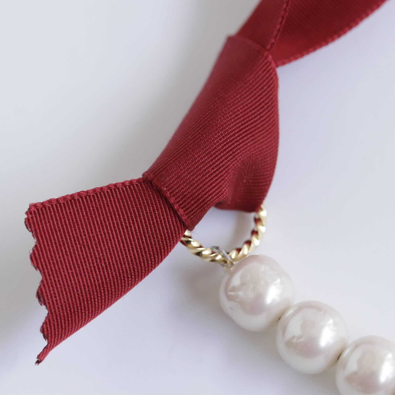 Ninon Original リメイクブローチ リボンパールネックレス Red