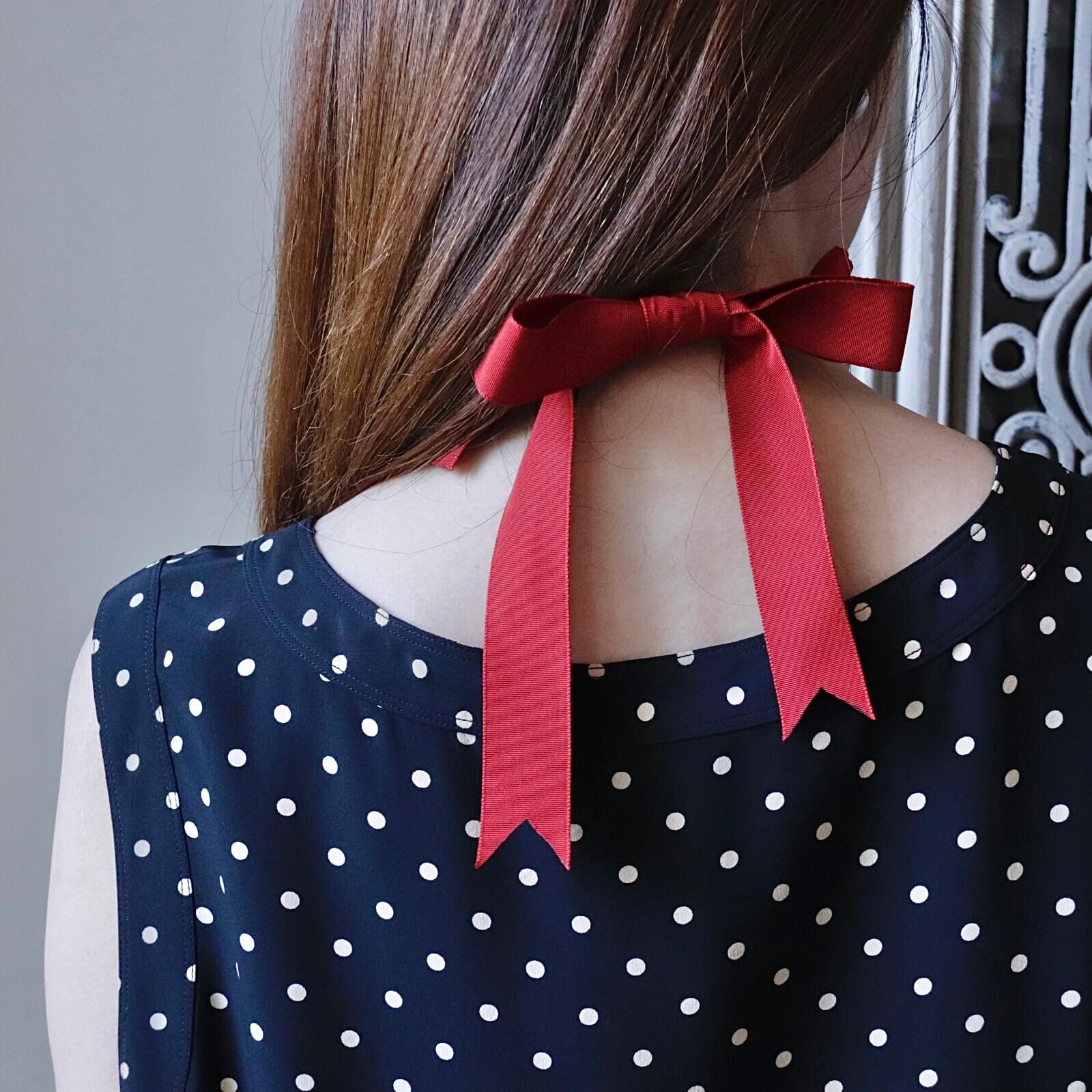 リボンを長く結んだり短くしたり、その時の着こなしに合わせてそれぞれ違った表情をお楽しみいただけます。