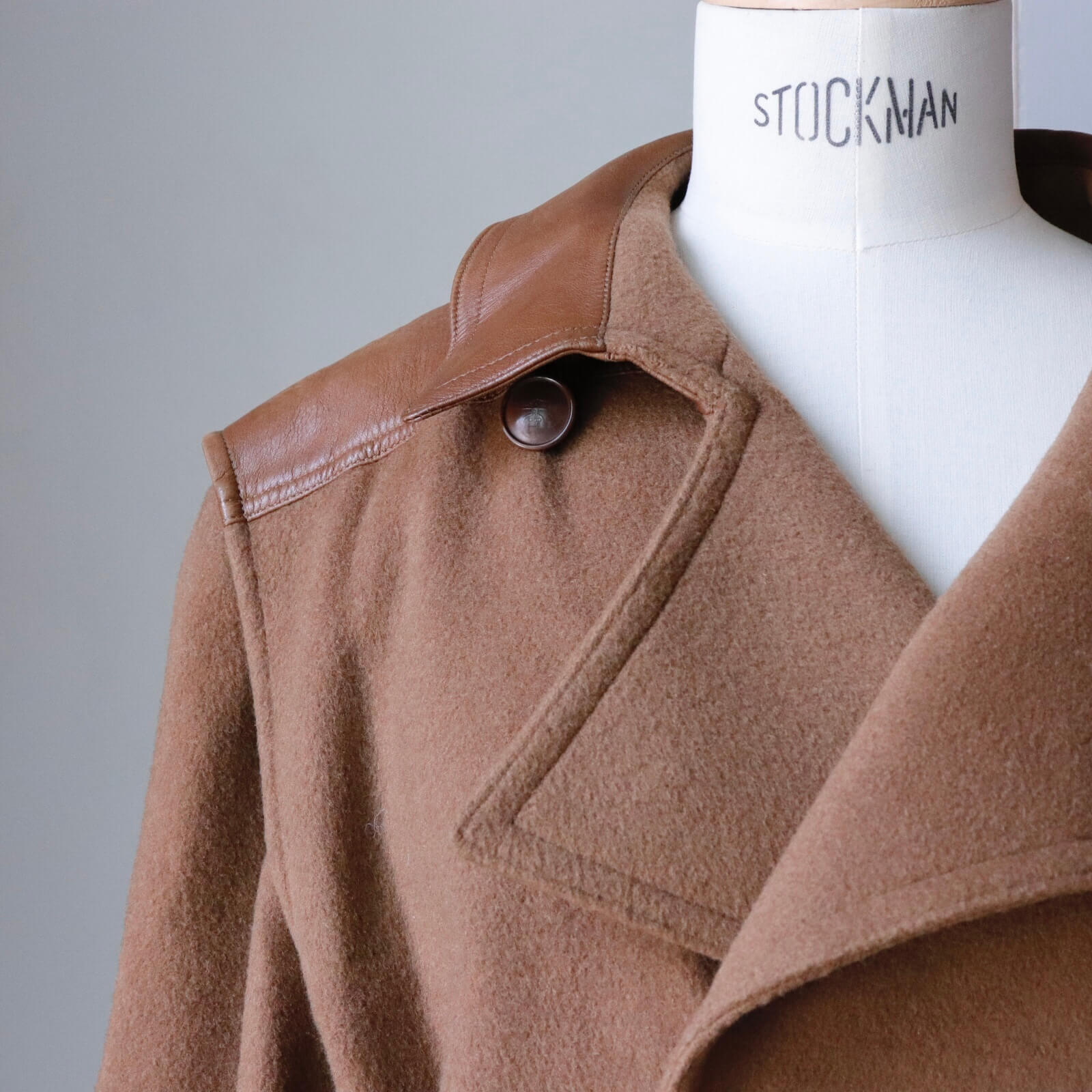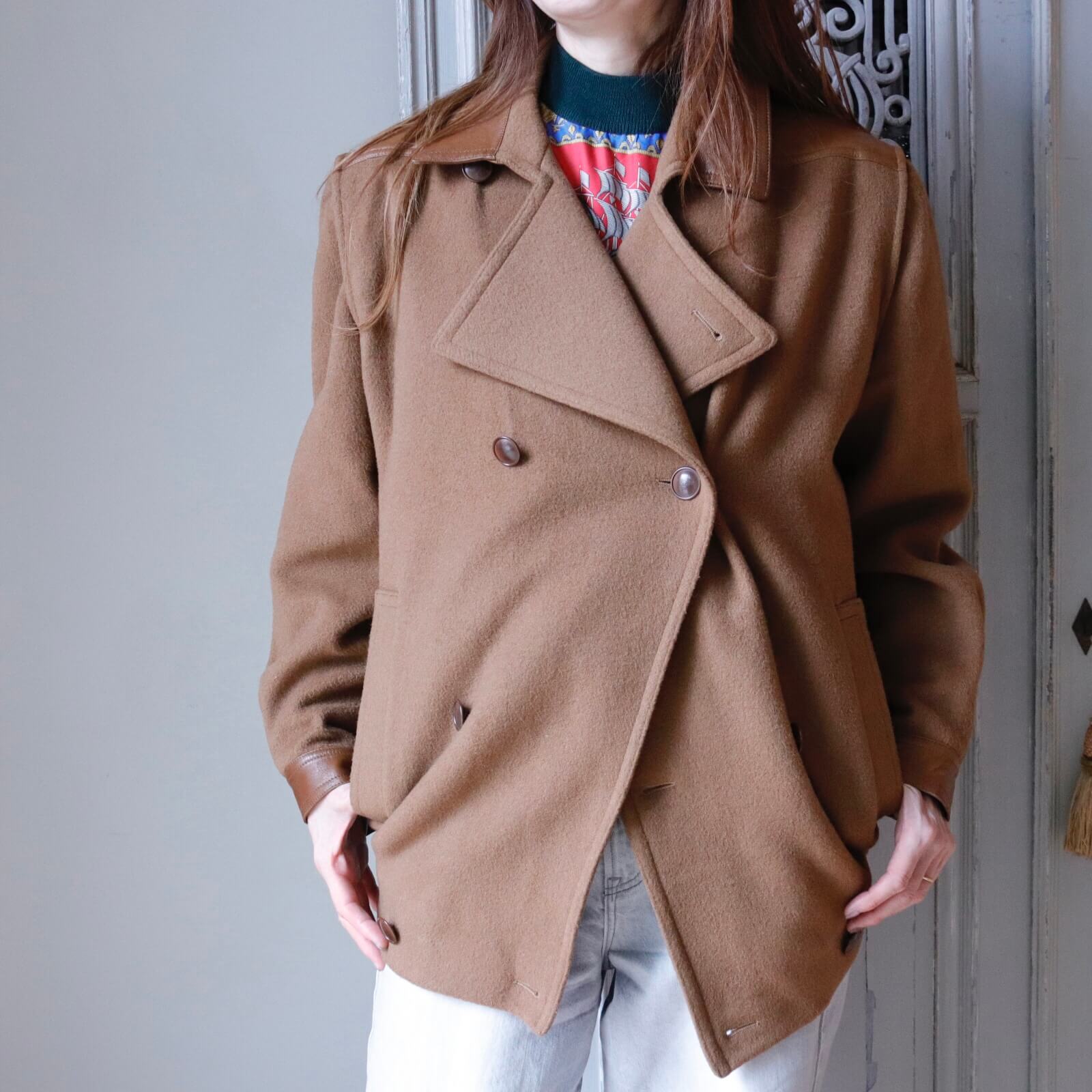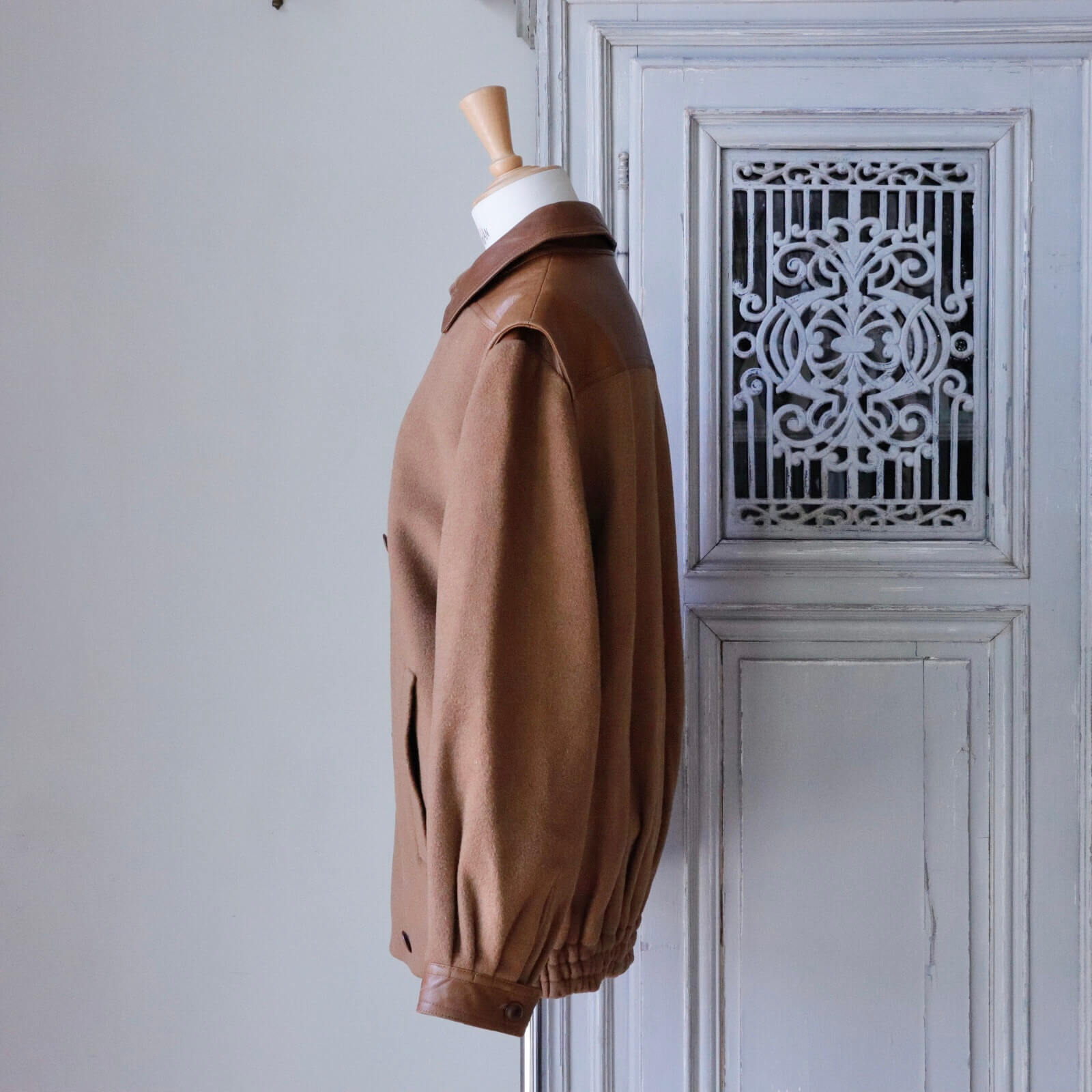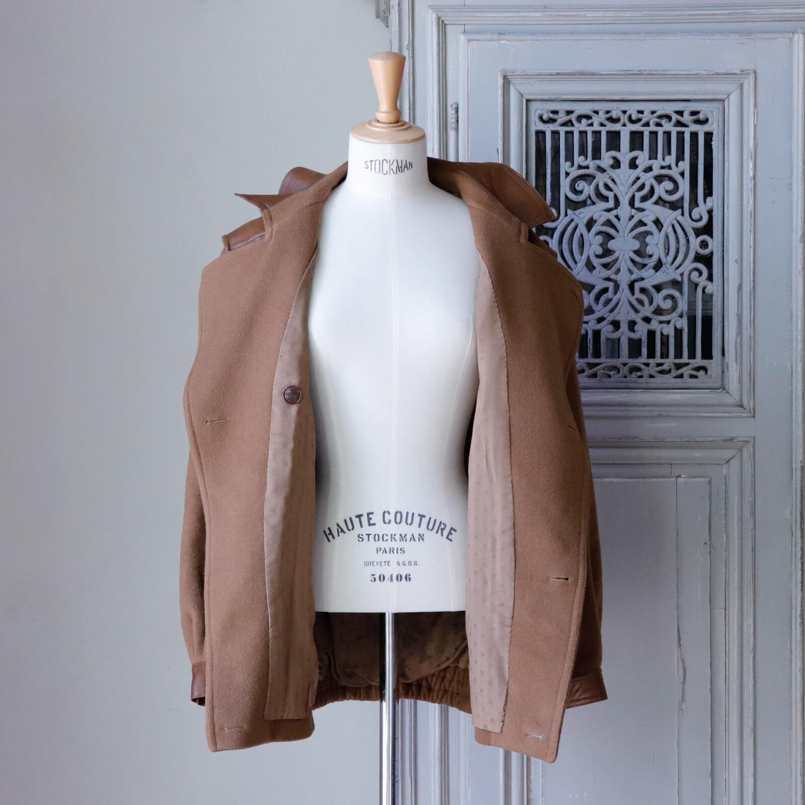 ヴィンテージ「エルメス」 ラムレザートリム ウール ドロップショルダー ジャケット