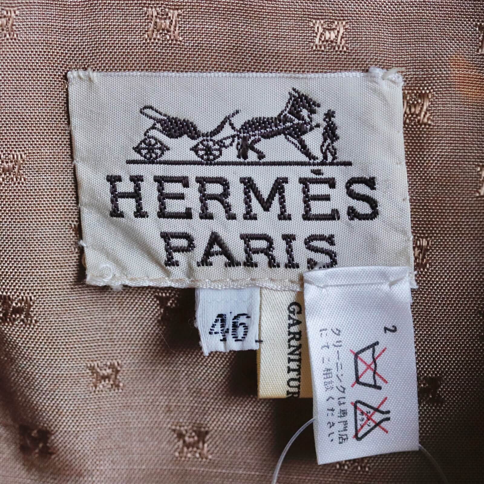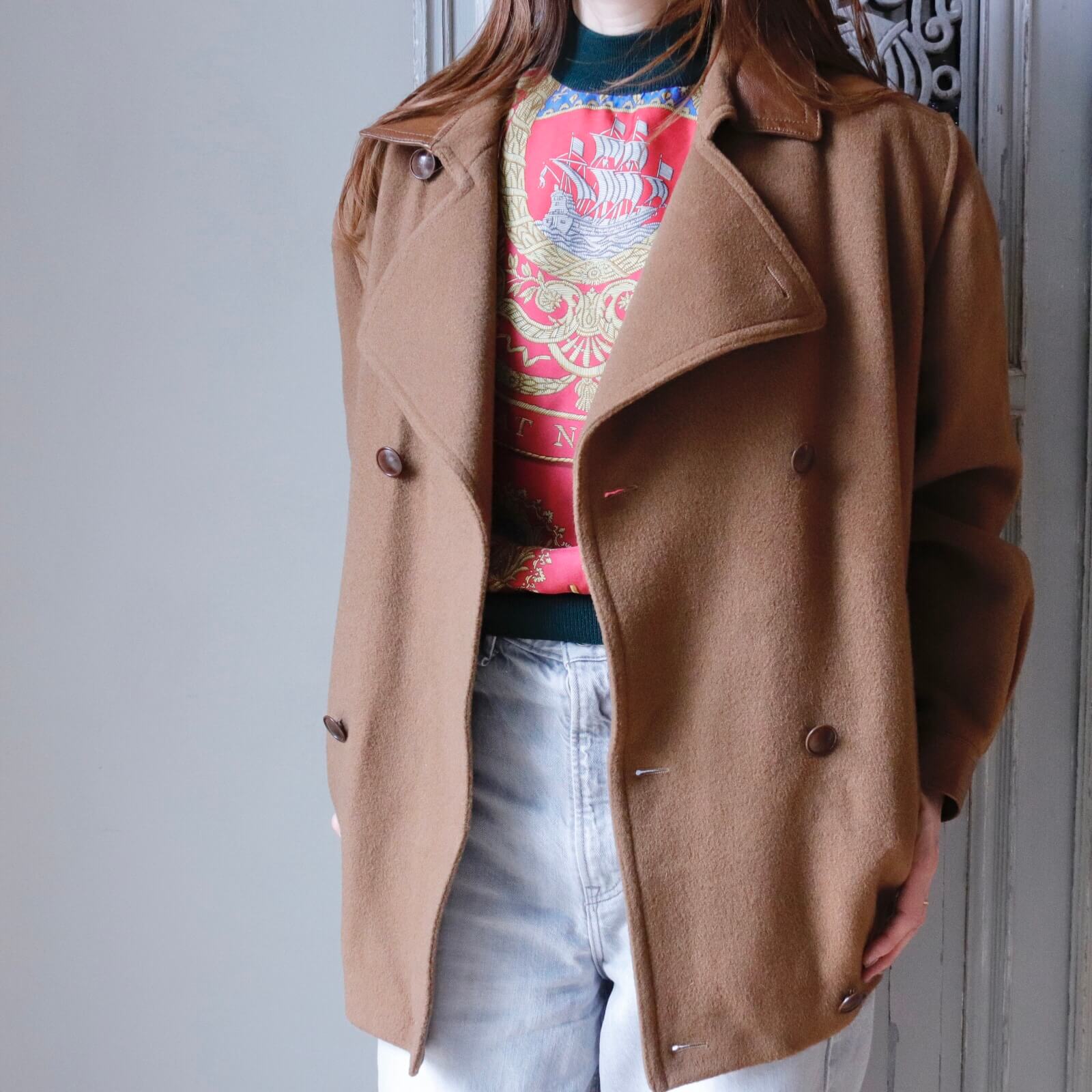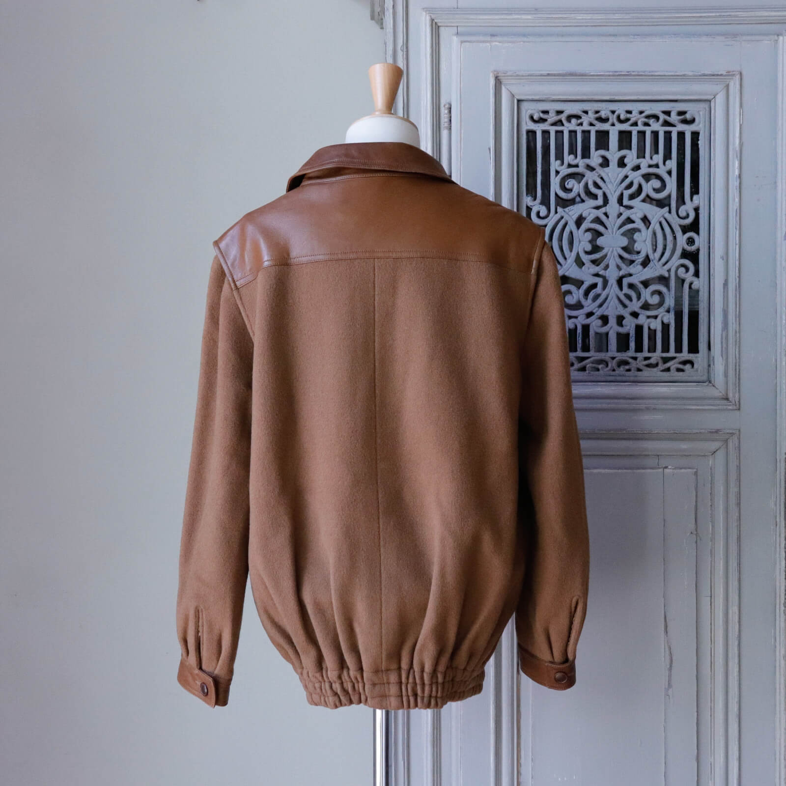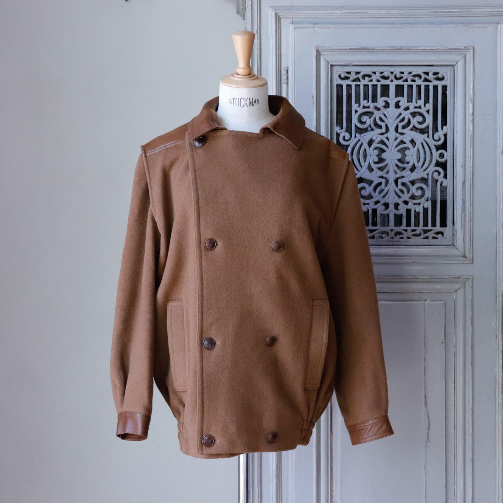 ヴィンテージ「エルメス」 ラムレザートリム ウール ドロップショルダー ジャケット