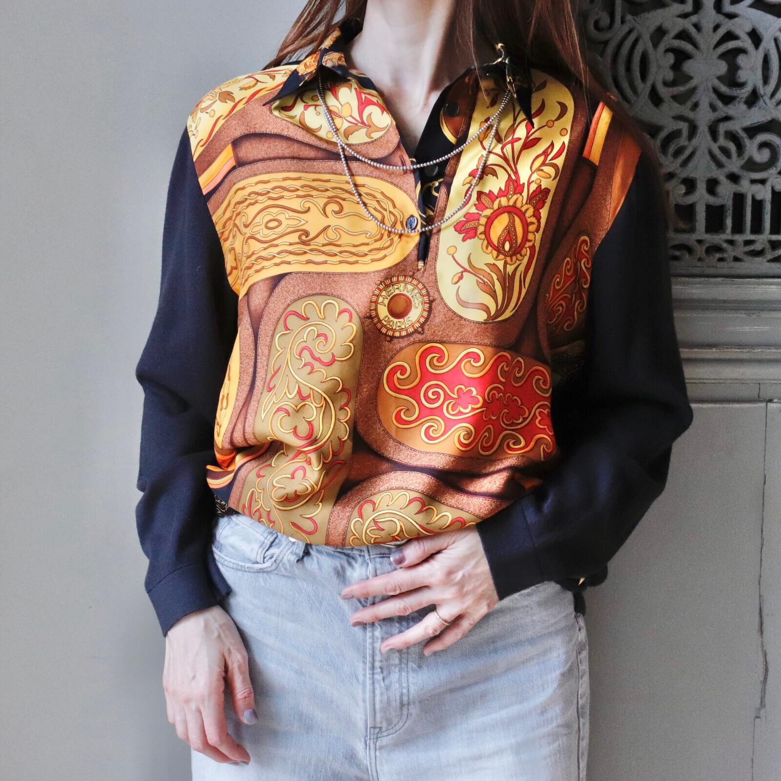 1992年に初めて発表されたHenri d'Orignyによる『Festival』(Henri d'Origny)のプリントを使ったトップスです。