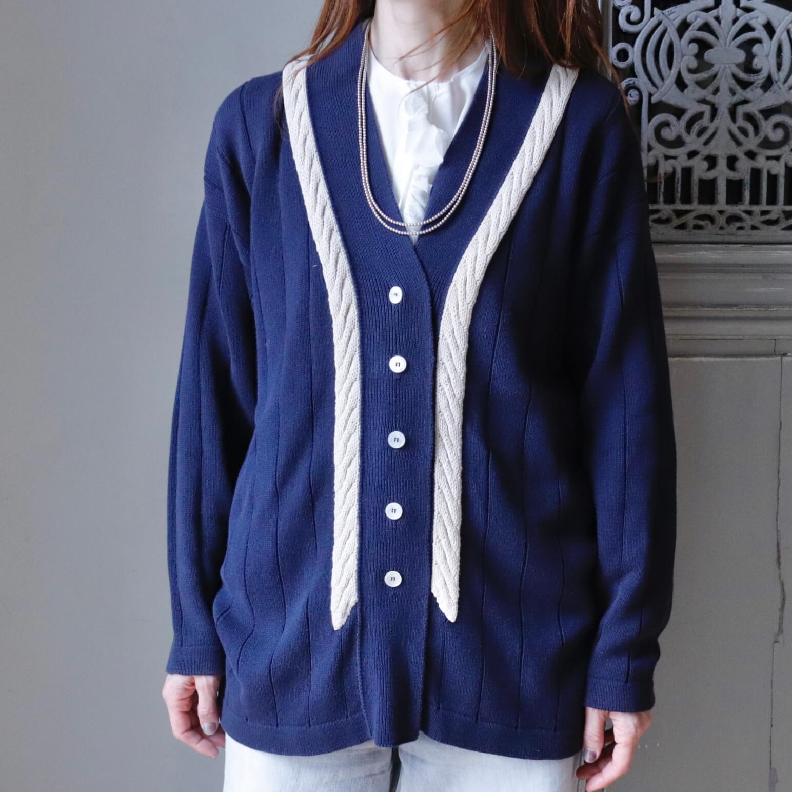ヴィンテージ「エルメス」 ケーブル編み ニットカーディガン