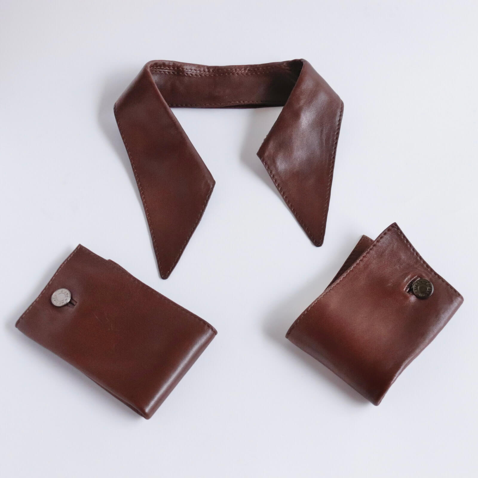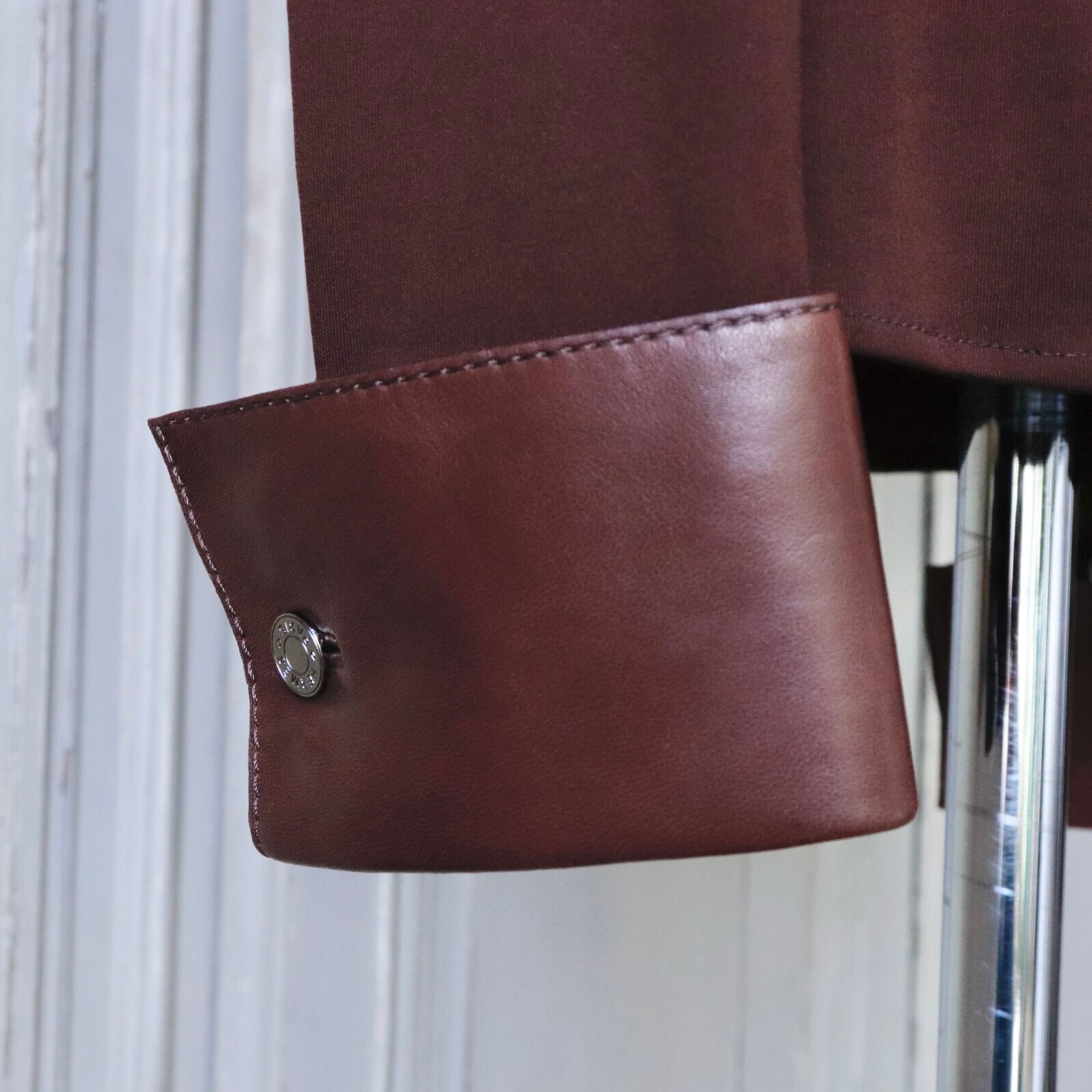 ゴルチエは、異なる素材を見事に融合させることが得意で、こちらも馬具工房のエルメスらしいレザーをジャージ素材と組み合わせたドラマチックな表現を見せています。