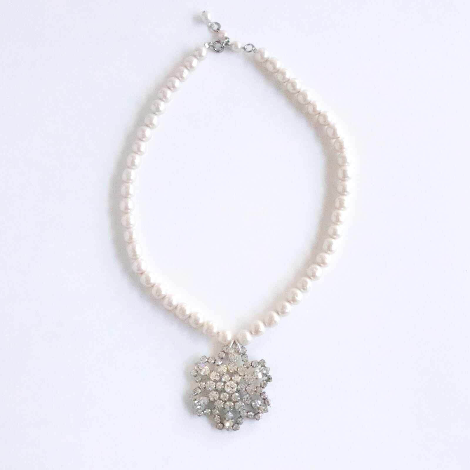 ヴィンテージ フラワーブローチ リメイク パールネックレス