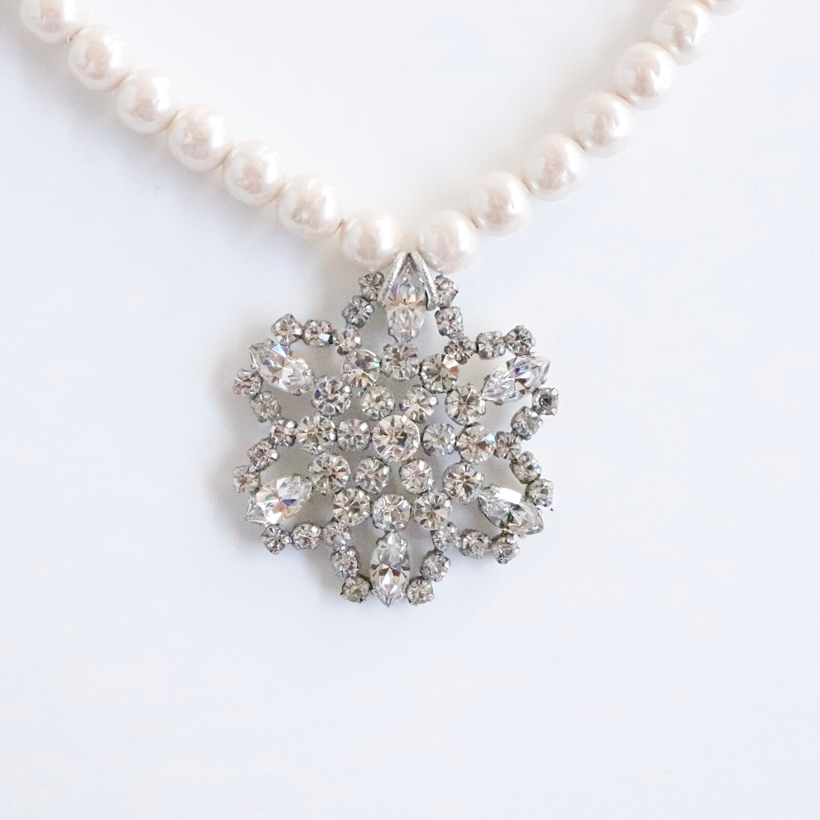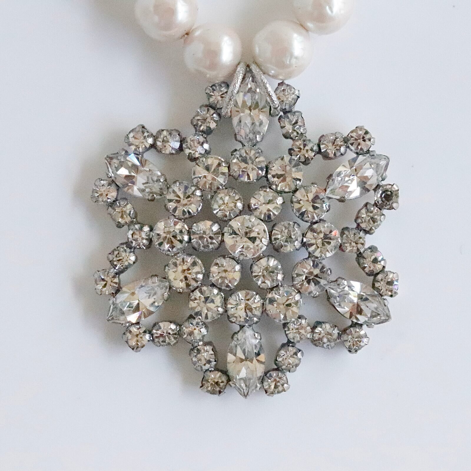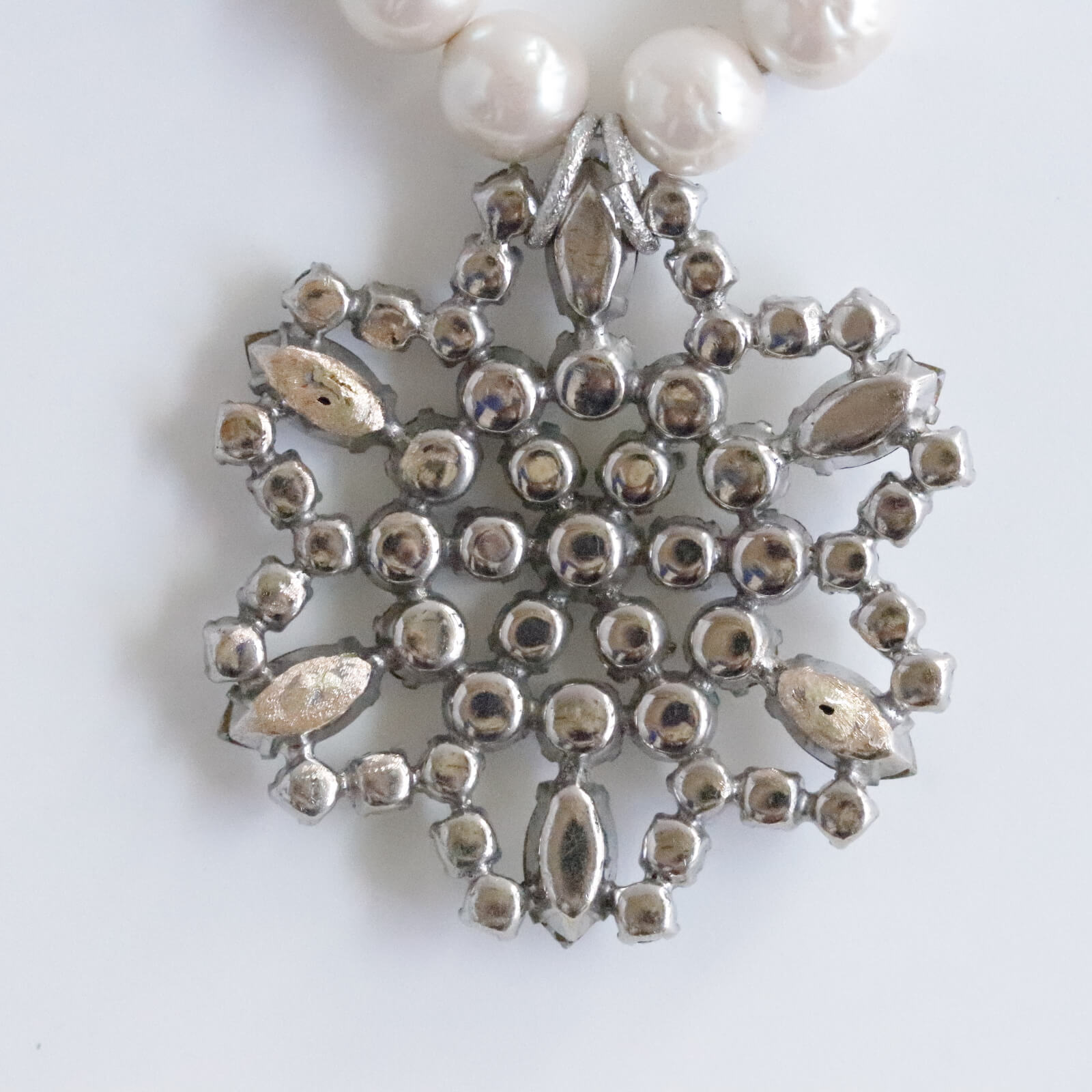 1950年代のブローチをチャームに仕立てたパールのネックレスです。