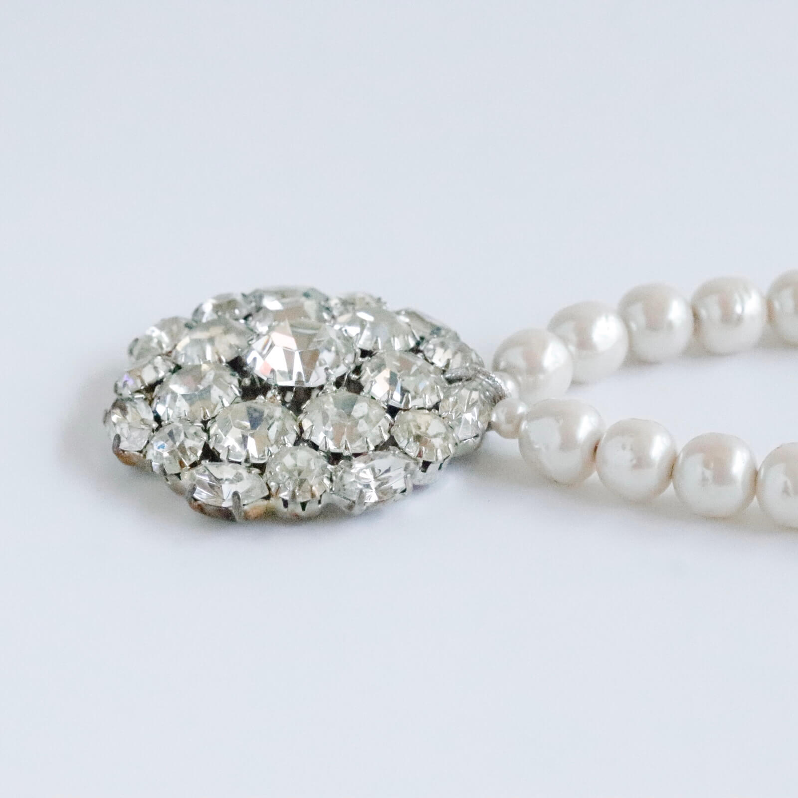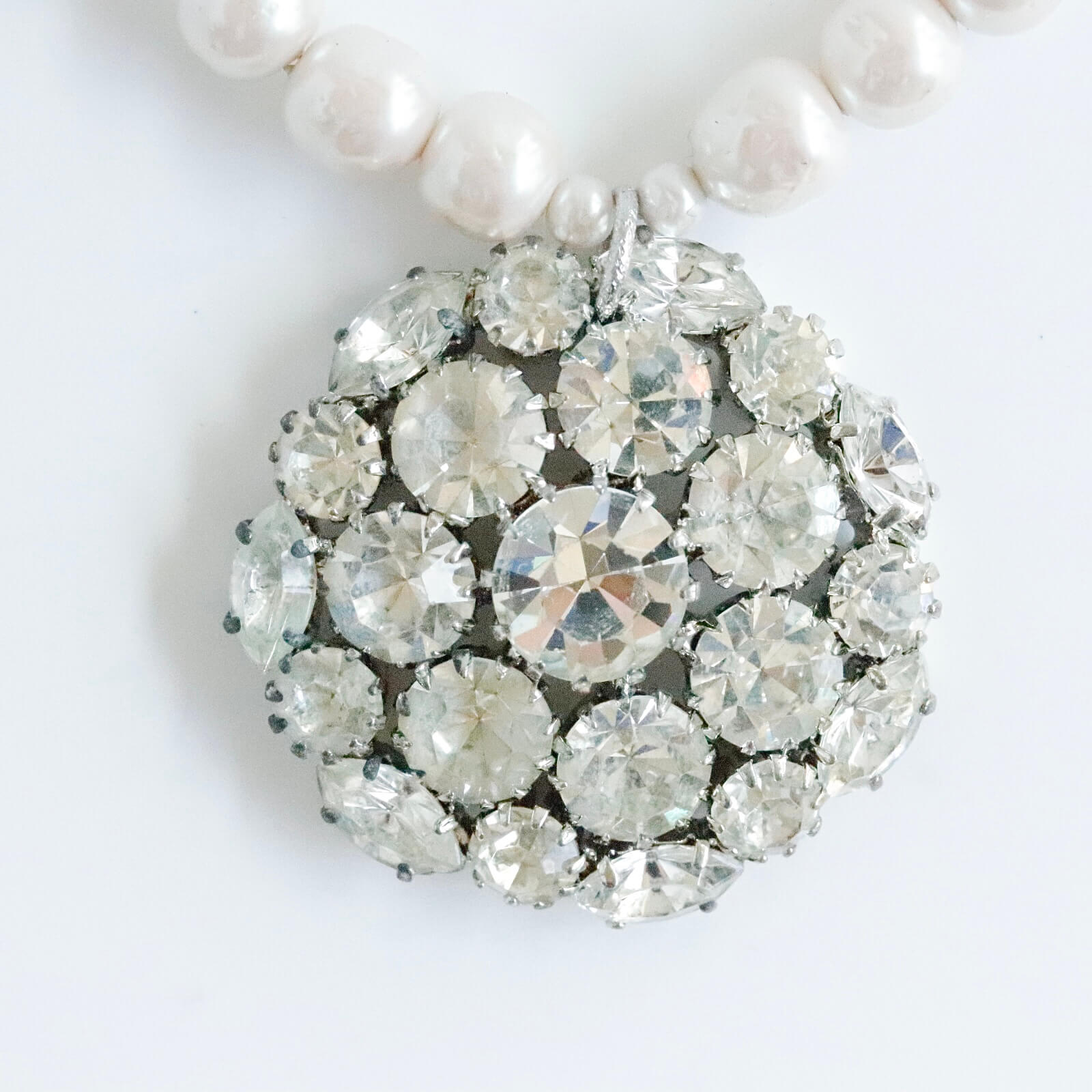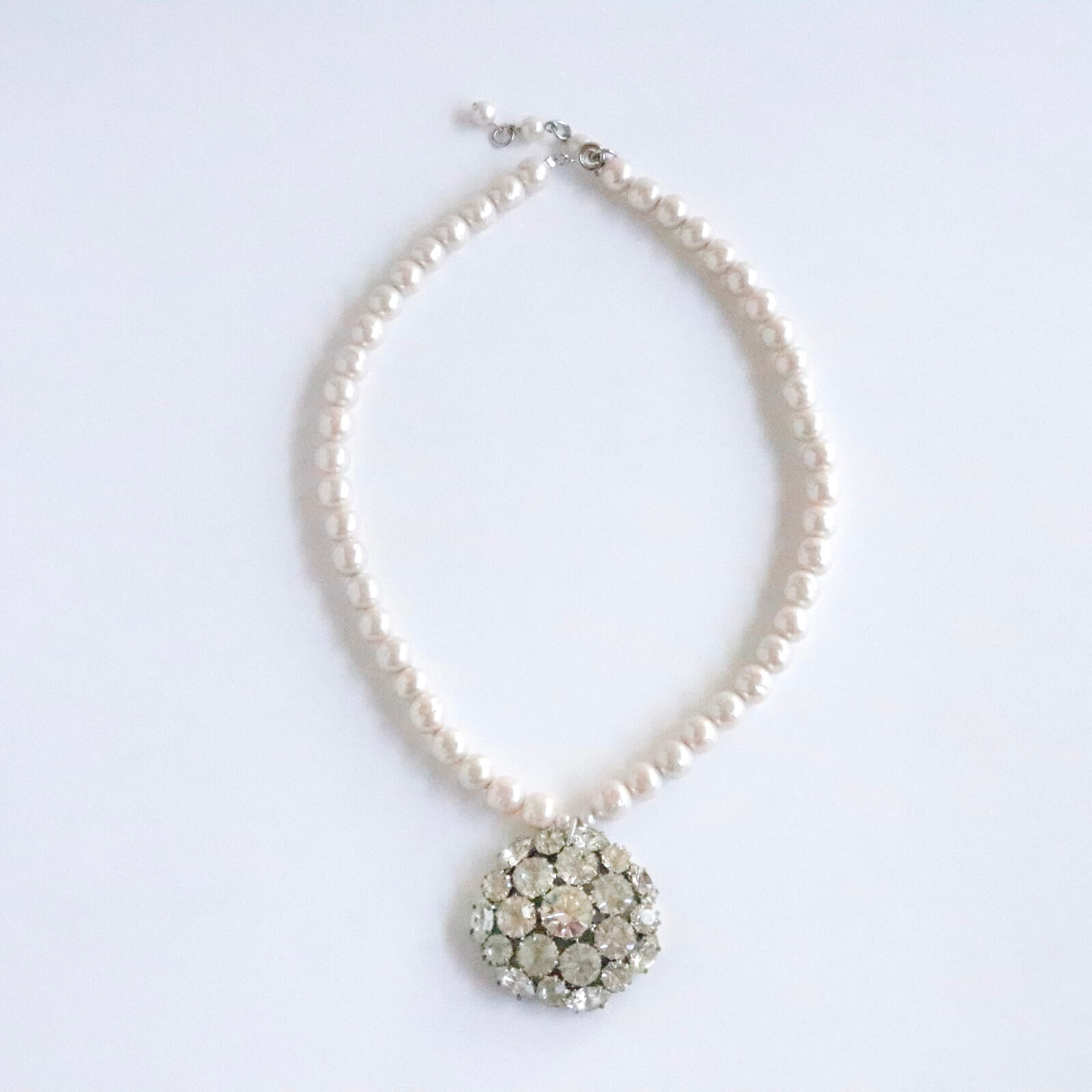 1950年代のブローチをチャームに仕立てたパールのネックレスです。