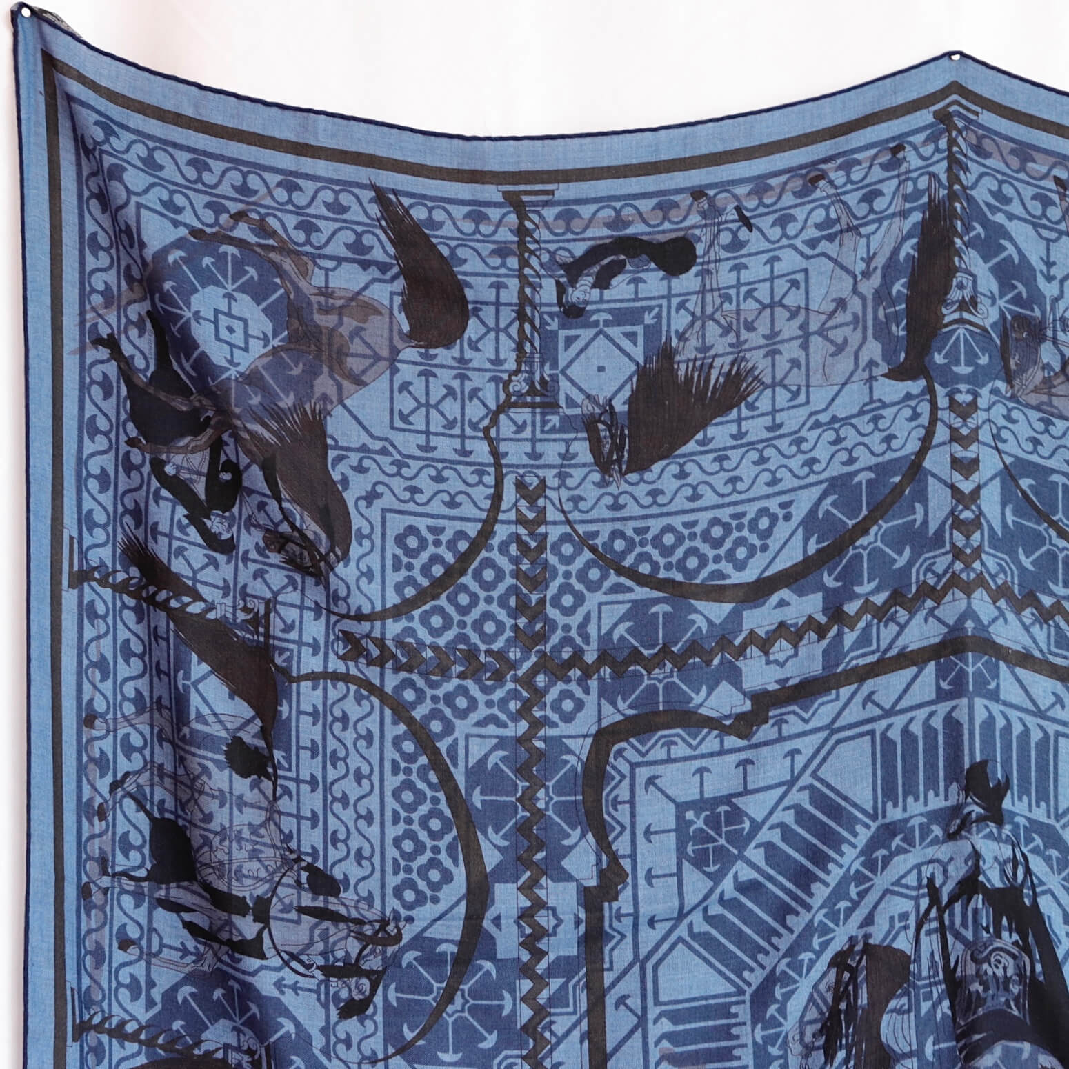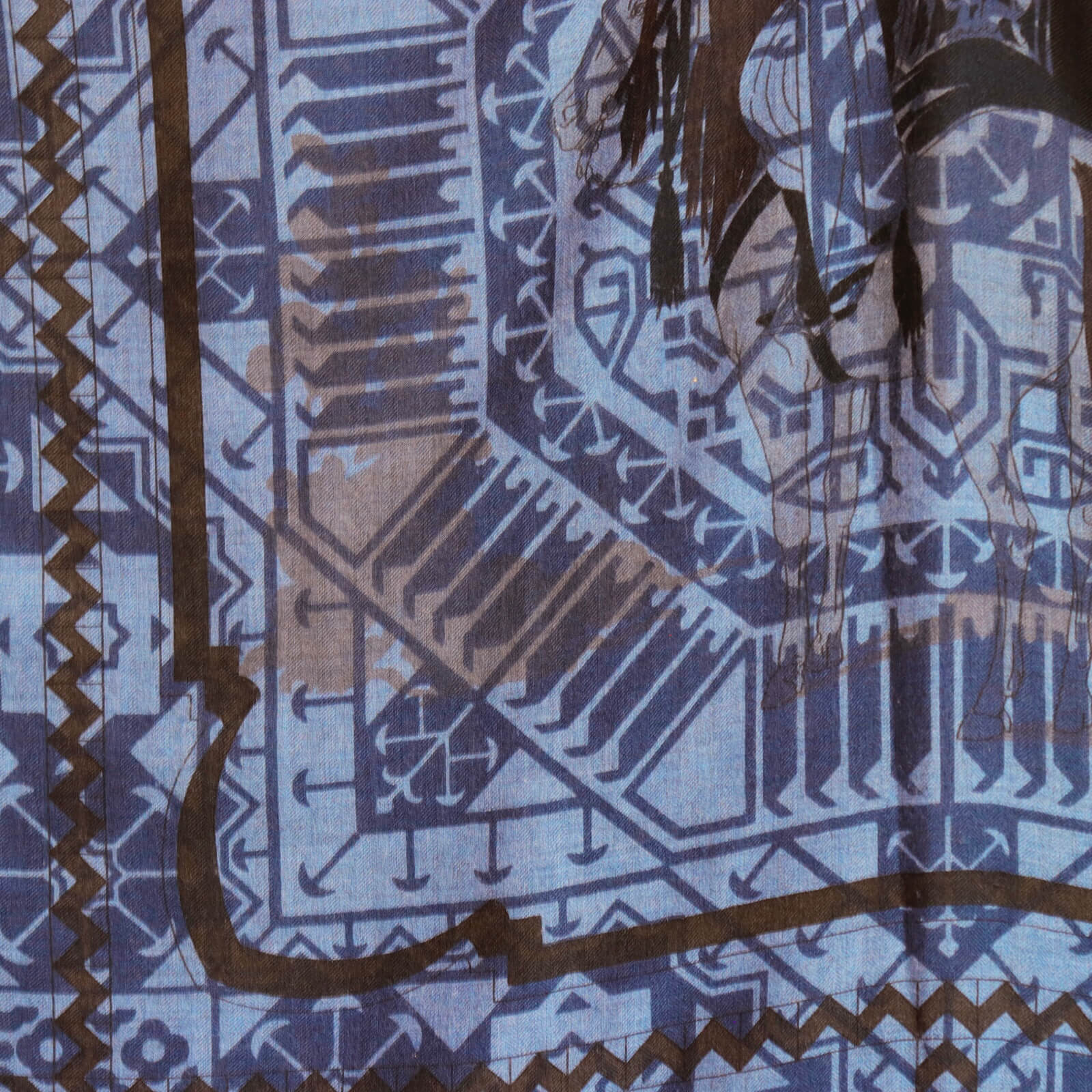 こちらは1951年に発表されたHugo Grygkarによる『Chevaux arabes(アラビアの馬)』のデザインの上に幾何学模様を合わせてプリントしたユニークな1枚。