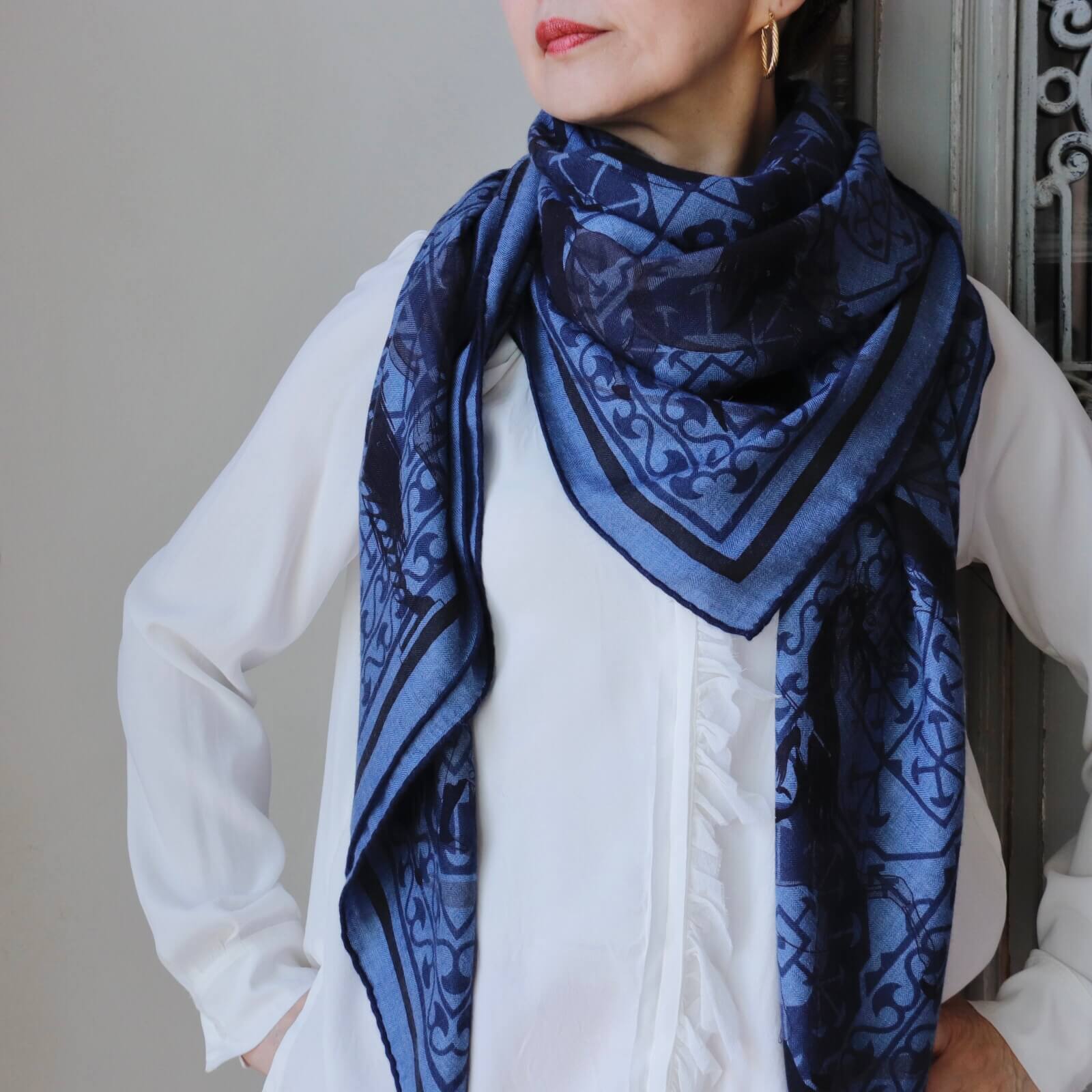 カレのデザインをそのまま大判のカシミア・シルクの素材にプリントしたものをカレジェアンと呼びます。