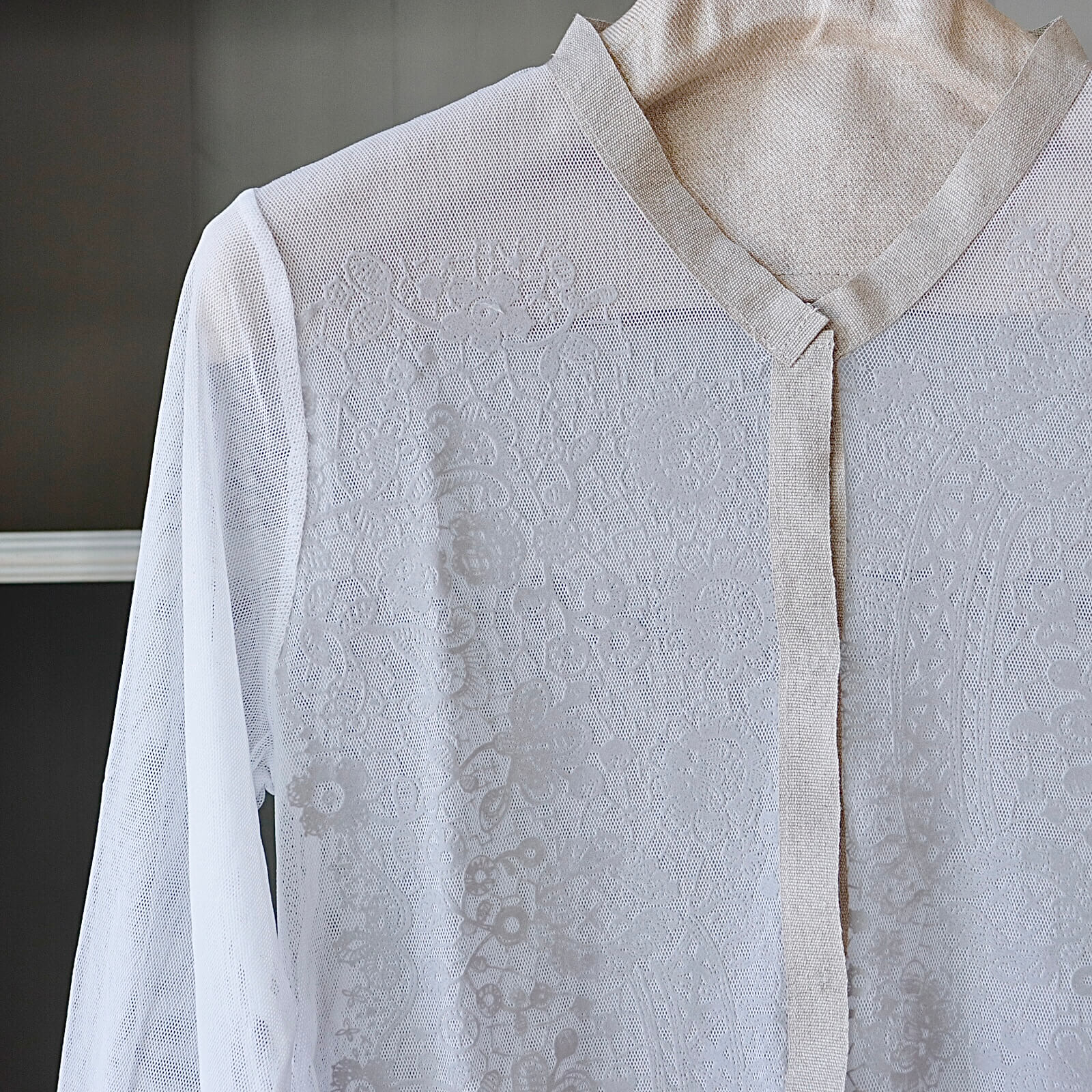 ノスタルジックな雰囲気のメッシュ生地に繊細なフロックのレース。