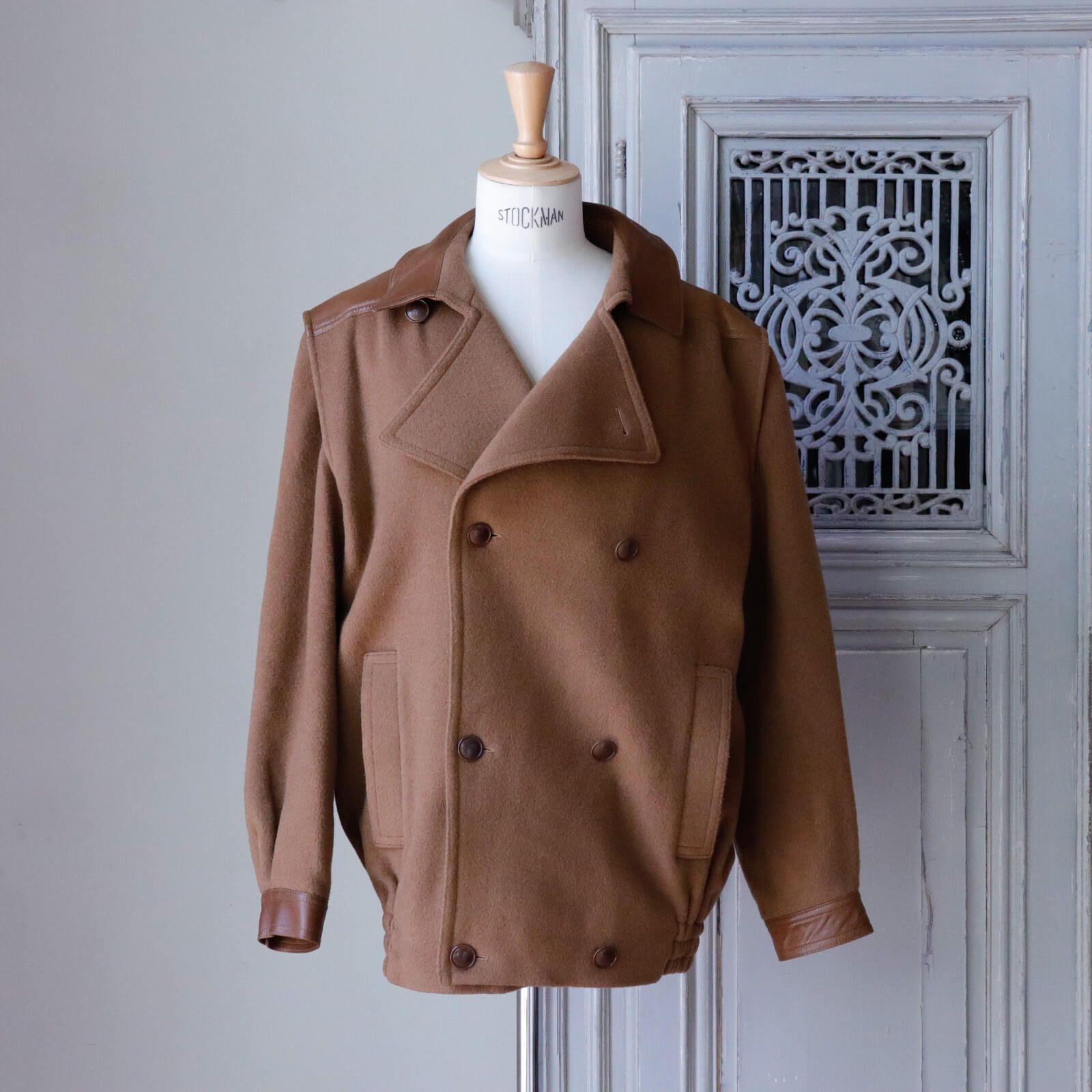ヴィンテージ「エルメス」 ラムレザートリム ウール ドロップショルダー ジャケット