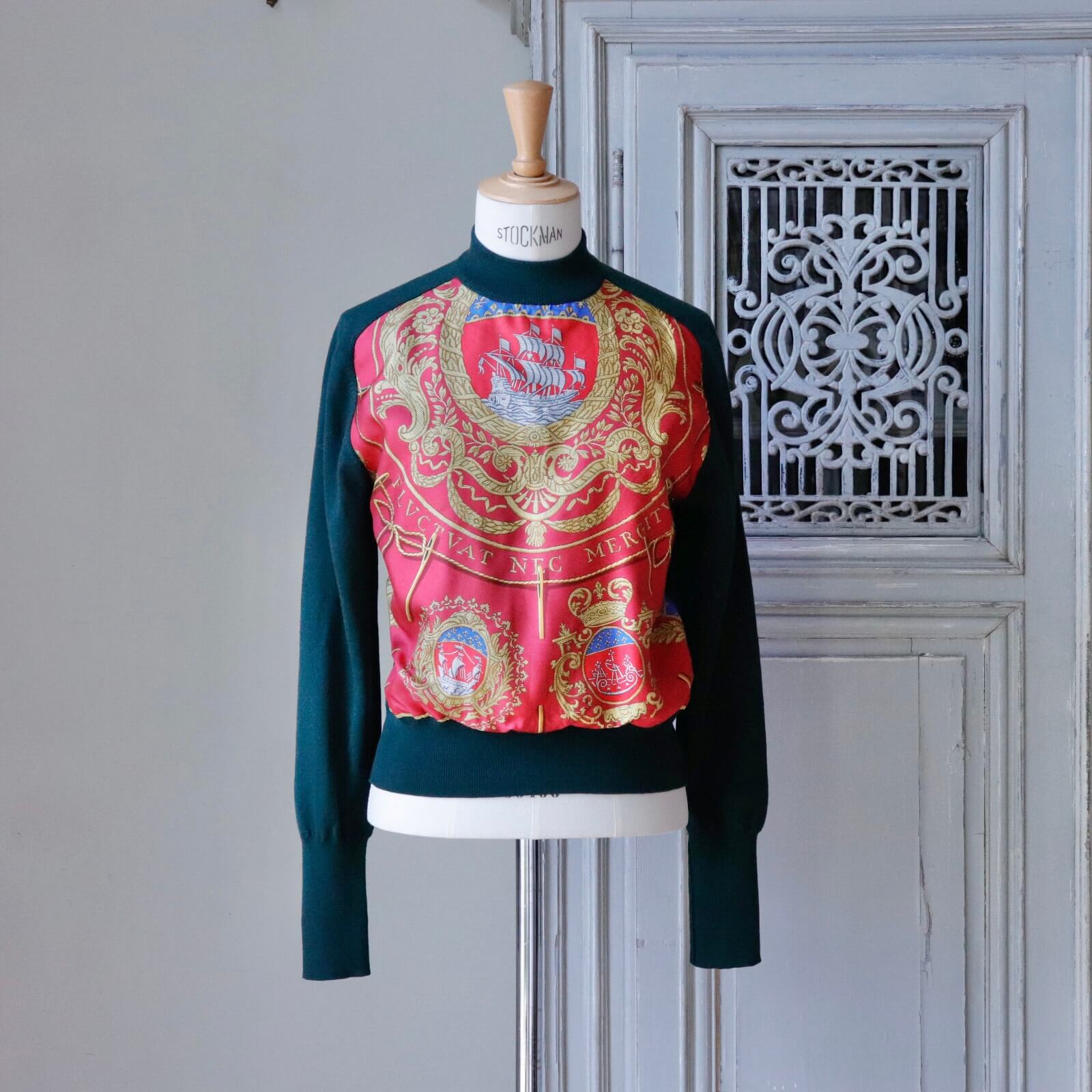 ヴィンテージ「エルメス」『Fluctuat nec mergitur』(パリの紋章)」ウールボトルネック ニット