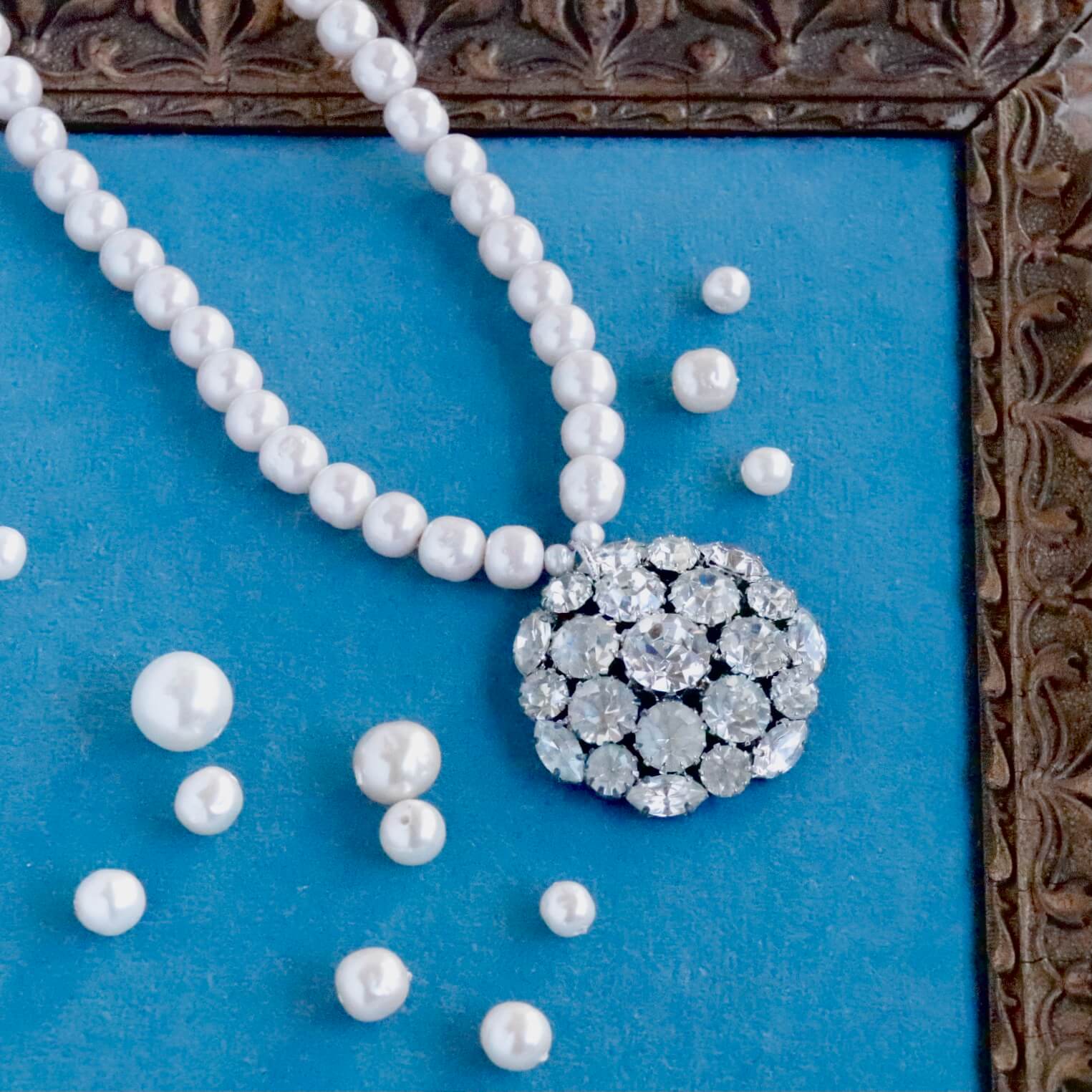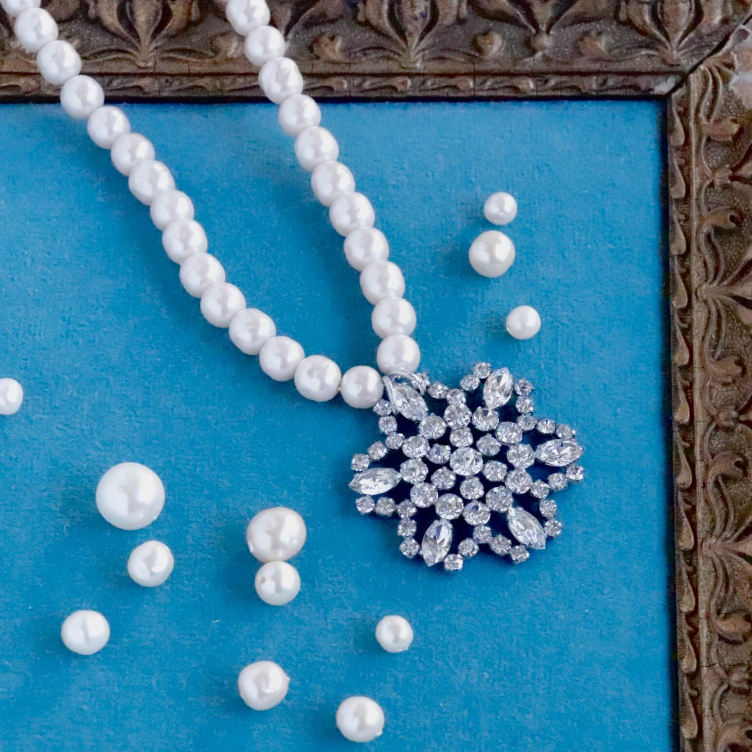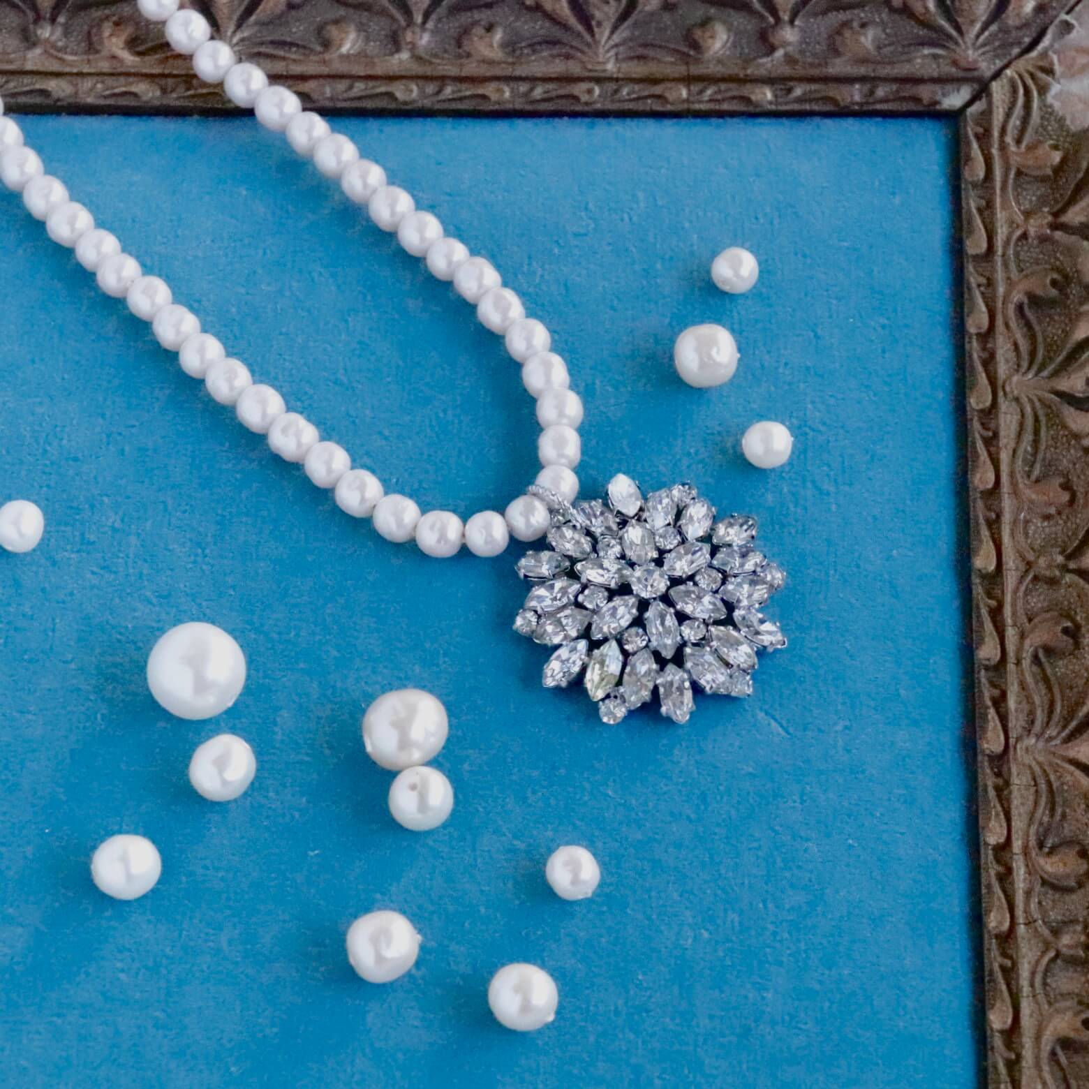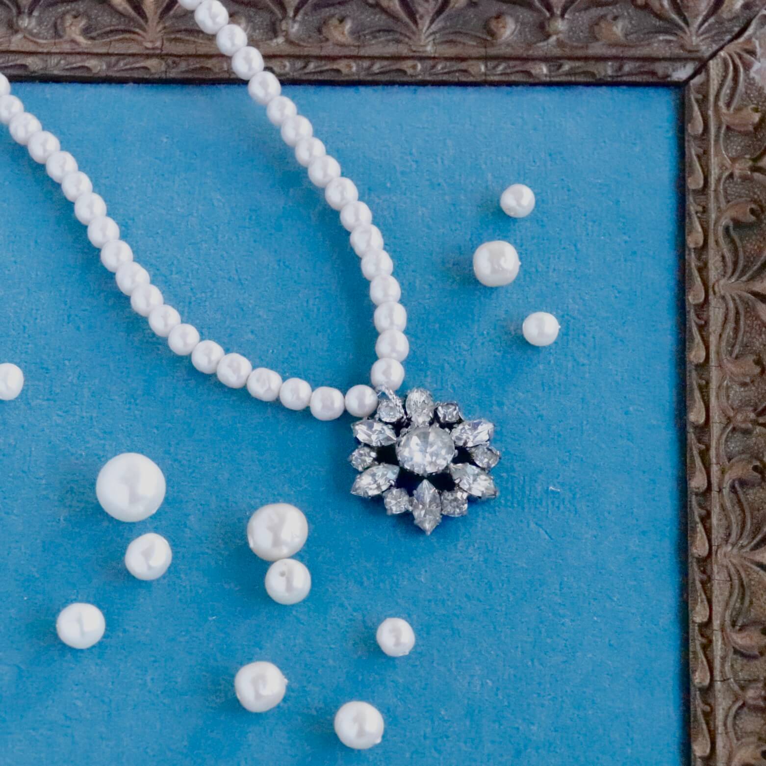 ヴィンテージ フラワーブローチ リメイク パールネックレス