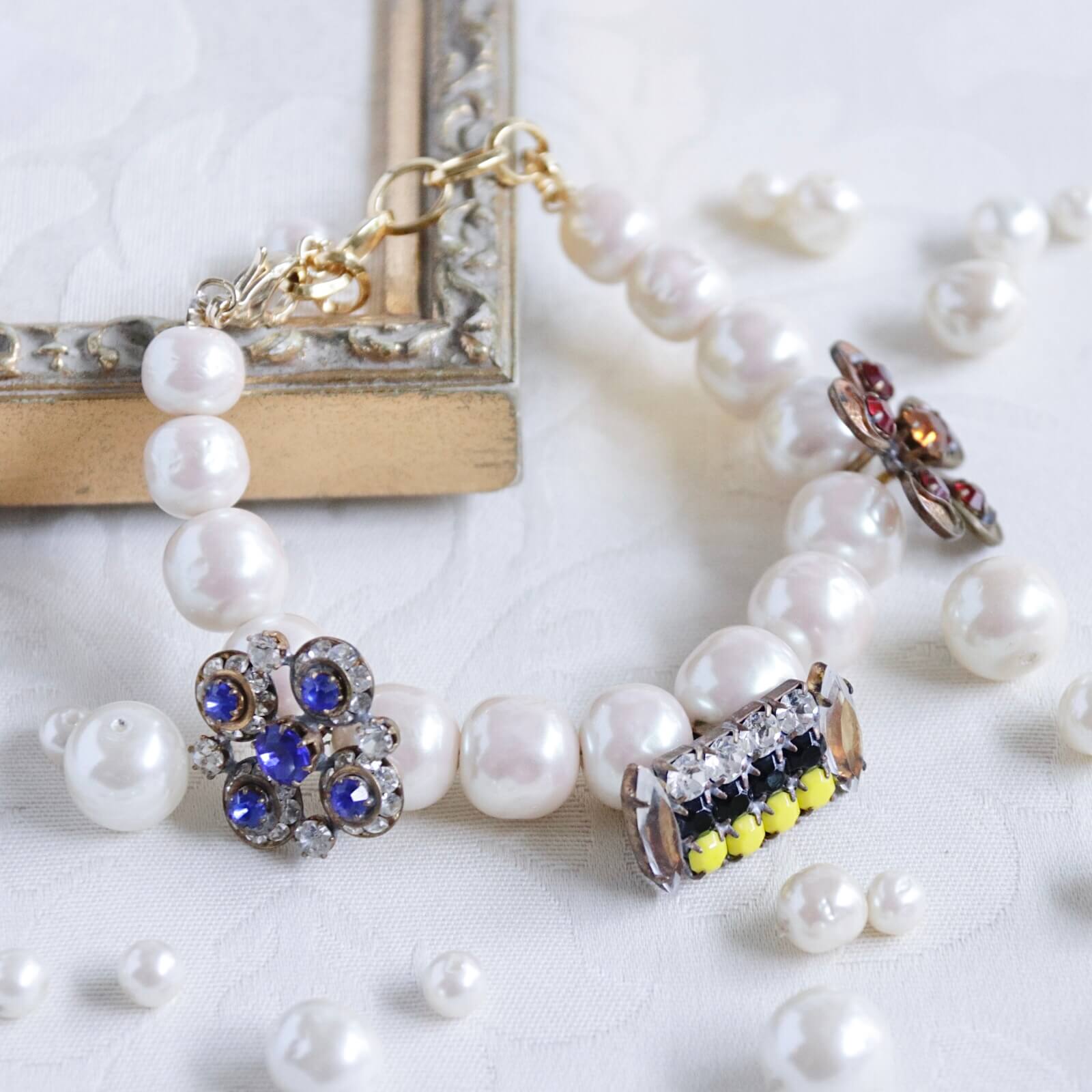 ヴィンテージ フラワーブローチ リメイク パールネックレス