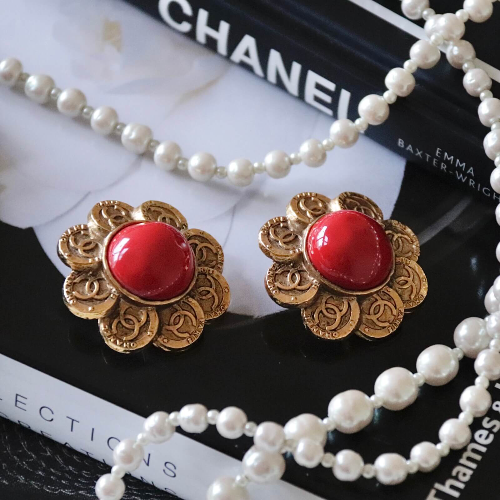 ヴィンテージ「シャネル」グリポアゴールドココマークフローラルイヤリング